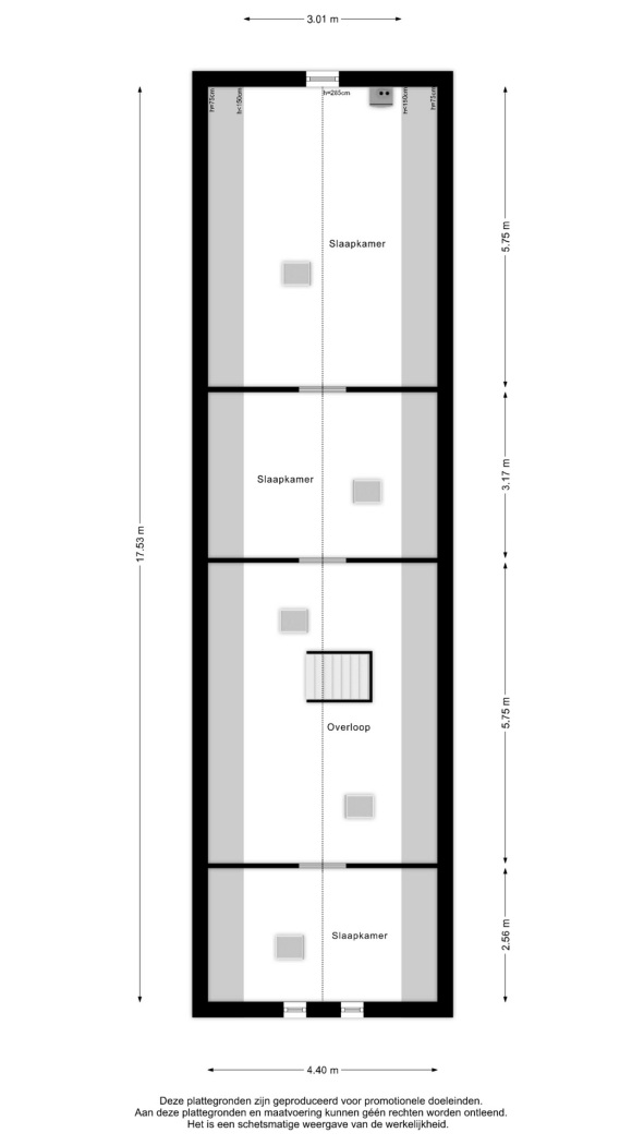 •Verdieping met 3 (slaap-/werk)ruimten, vrij indeelbaar