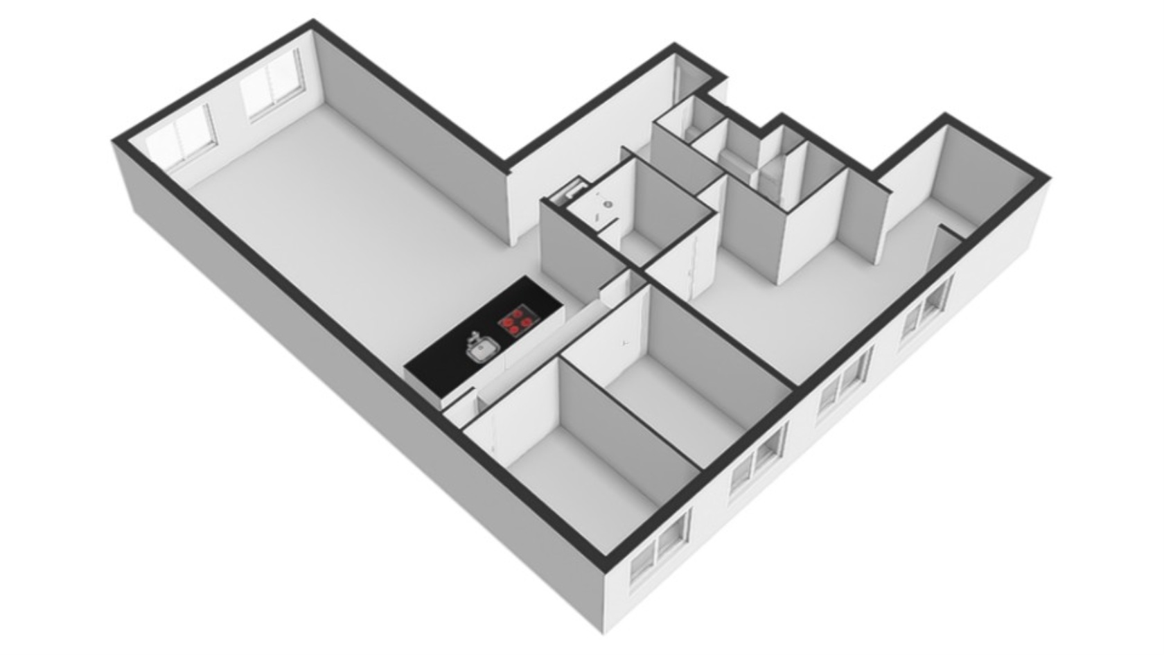 •Four rooms, including three bedrooms