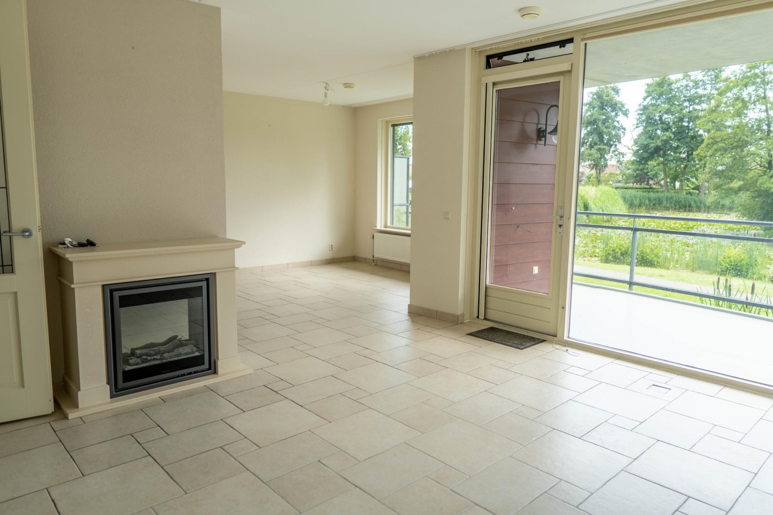 Er zijn 2 slaapkamers, een berging met witgoedaansluitingen en de keuken met inbouwapparatuur staat in half-open verbinding met de woonkamer. Zo kun je een separate eethoek en zithoek rond de sfeerhaard creëren. De ruime woonkamer/ keuken is een fijne lichte ruimte door de grote raampartijen en in de zomerperiode kun je buiten direct naar binnen halen door het aangrenzende balkon. Een extraatje aan dit hoek-appartement op de begane grond is dat er naast het ruime balkon, ook nog een flink dakterras aanwezig is. Zet hier een tuin set neer en geniet heel de dag van de zon.