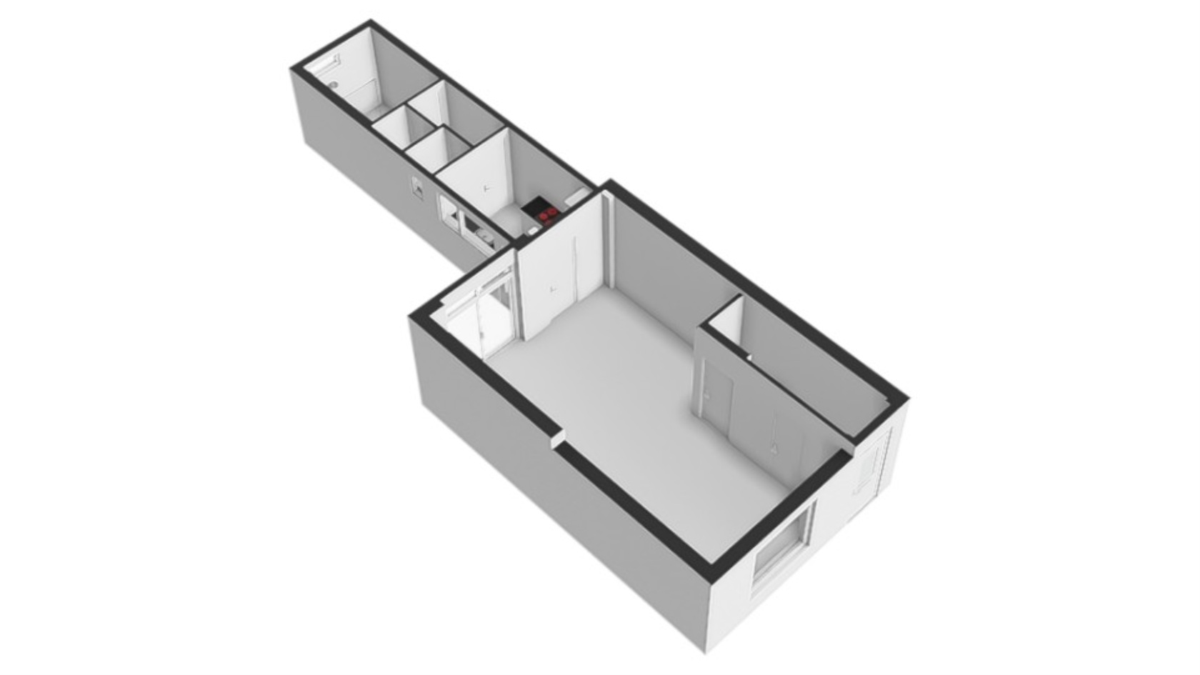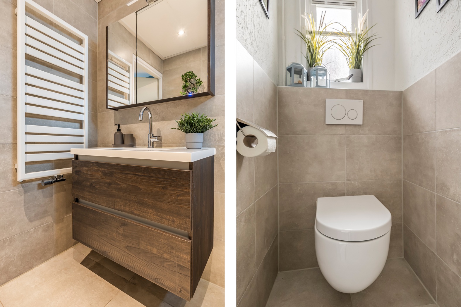 Aansluitend aan de keuken bevindt zich een praktische tussenhal met een modern zwevend toilet. Daarnaast is er een kast en de opstelplaats voor de cv-installatie.