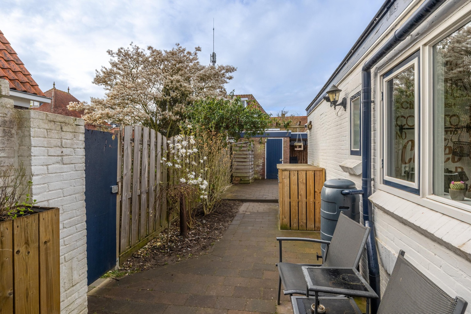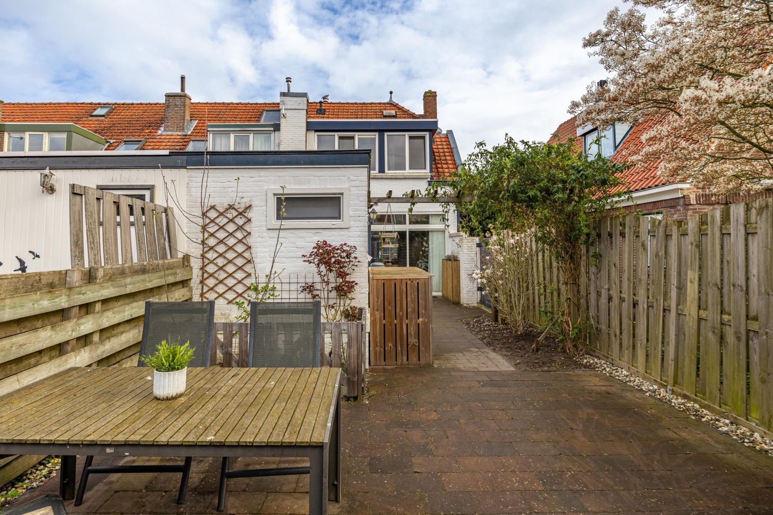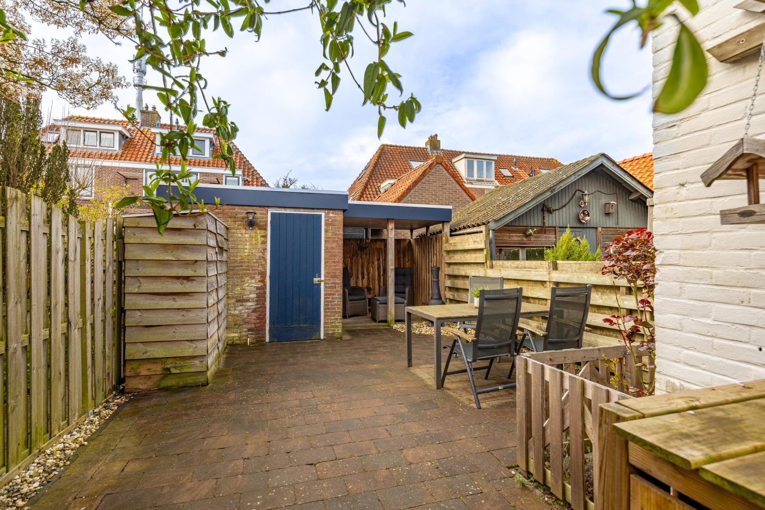 De achtertuin ligt op het zonnige zuiden en biedt volop privacy — een heerlijke plek om te ontspannen en te genieten van het buitenleven.