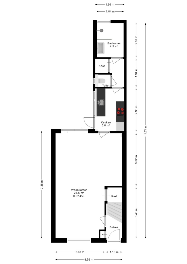 •Volledig dubbel glas (HR begane grond, HR++ verdieping)