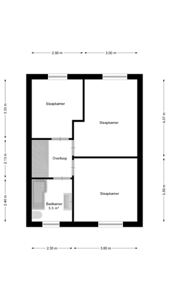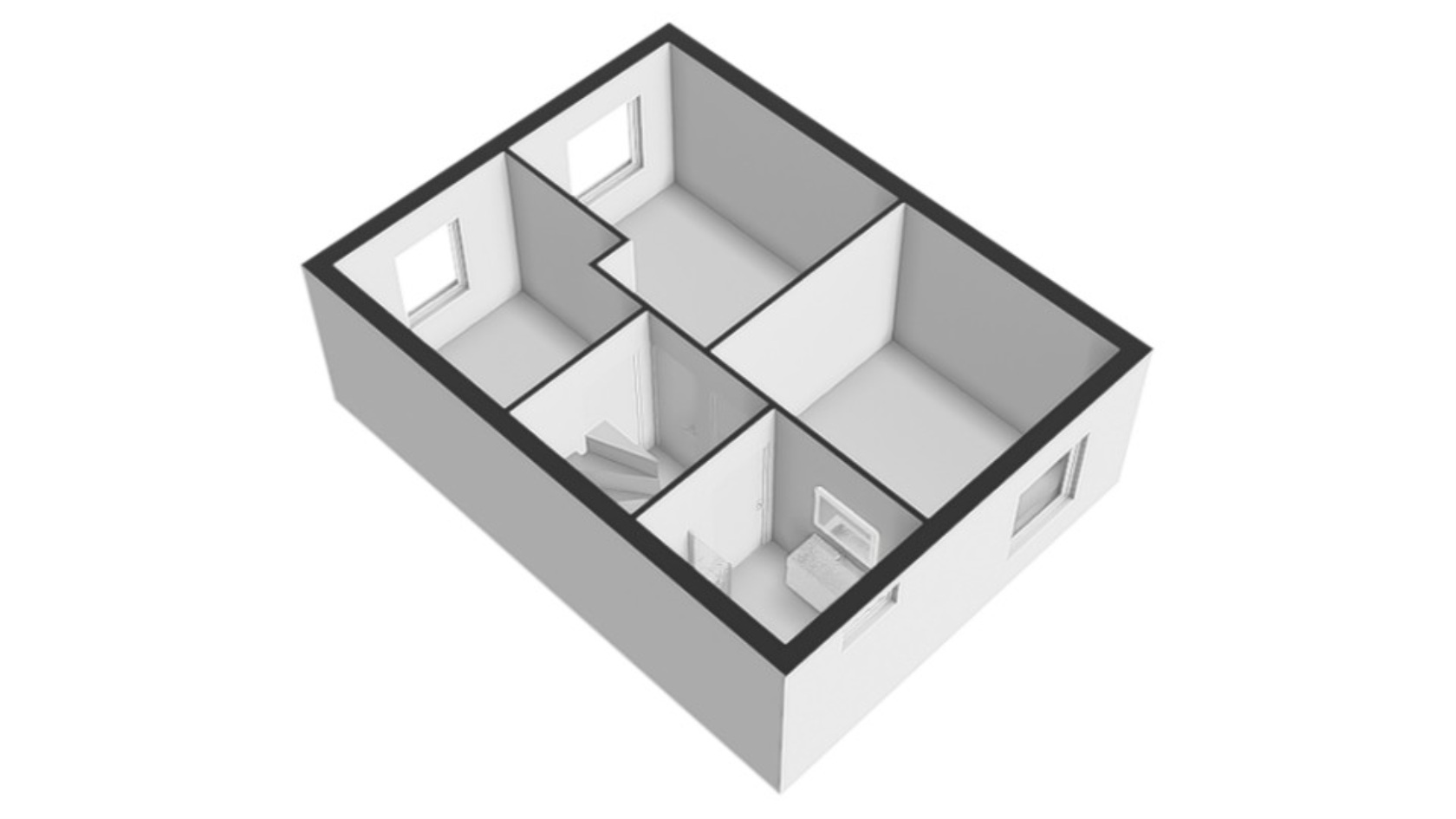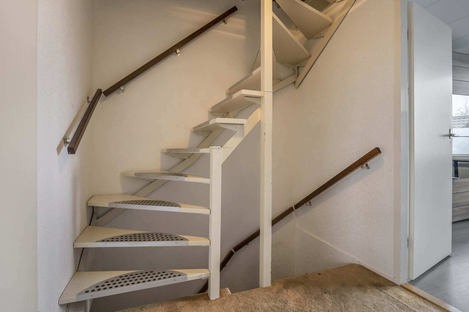 Via een vaste trap is de tweede verdieping bereikbaar. Op de overloop bevinden zich twee bergkasten en de opstelplaats van de cv-installatie. Vanaf hier is er toegang tot een fijne vierde slaapkamer, die ook uitstekend kan dienen als werk- of sportruimte. Het dakraam zorgt voor prettig daglicht en achter de knieschotten is extra bergruimte aanwezig.