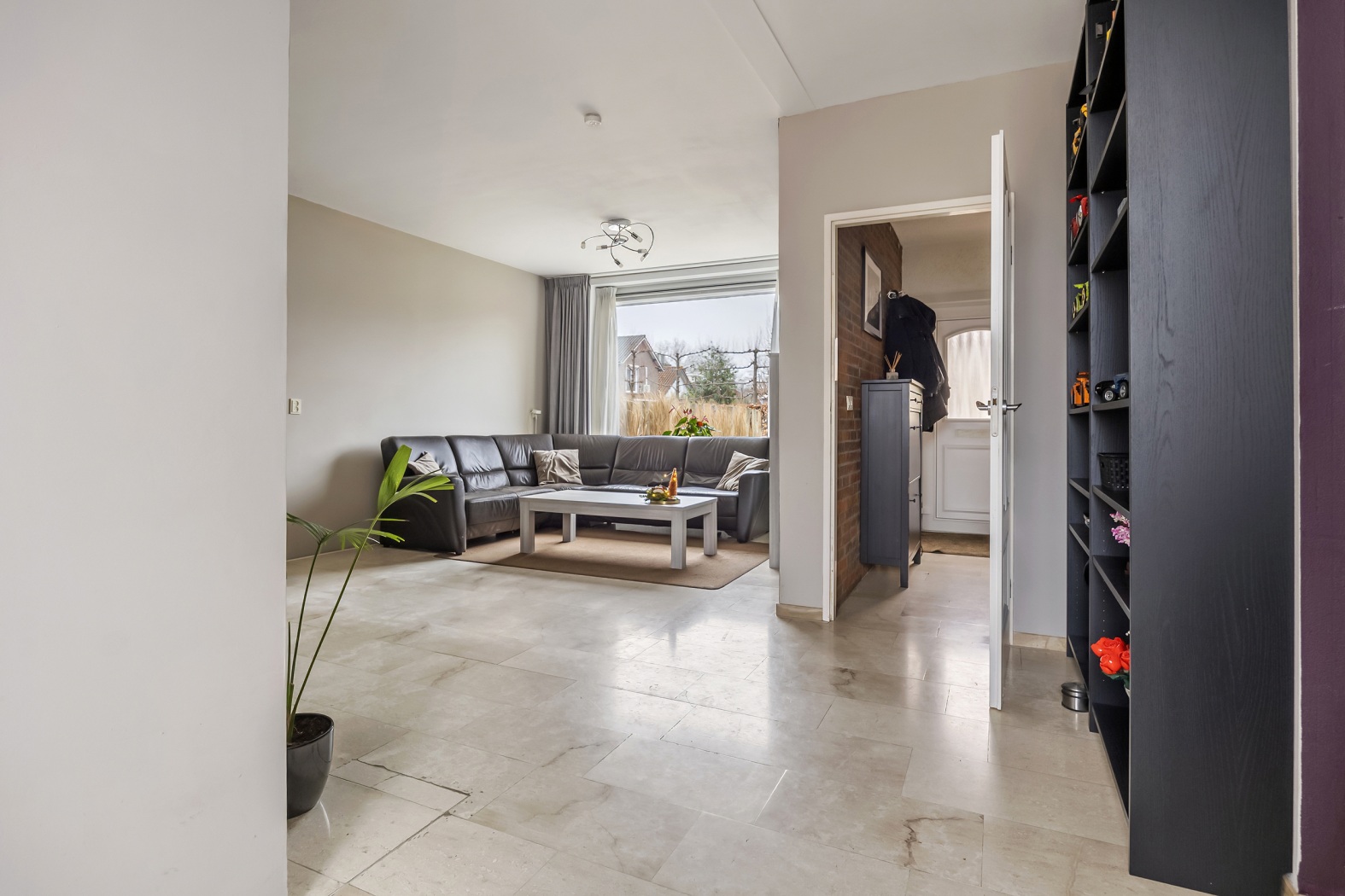 De Z-vormige woonkamer van ca. 33 m² is voorzien van een marmeren vloer en heeft aan de voorzijde een gezellig zitgedeelte. Aan de achterzijde bevindt zich het eetgedeelte, gelegen naast de gesloten keuken, waardoor koken en tafelen prettig gescheiden zijn.