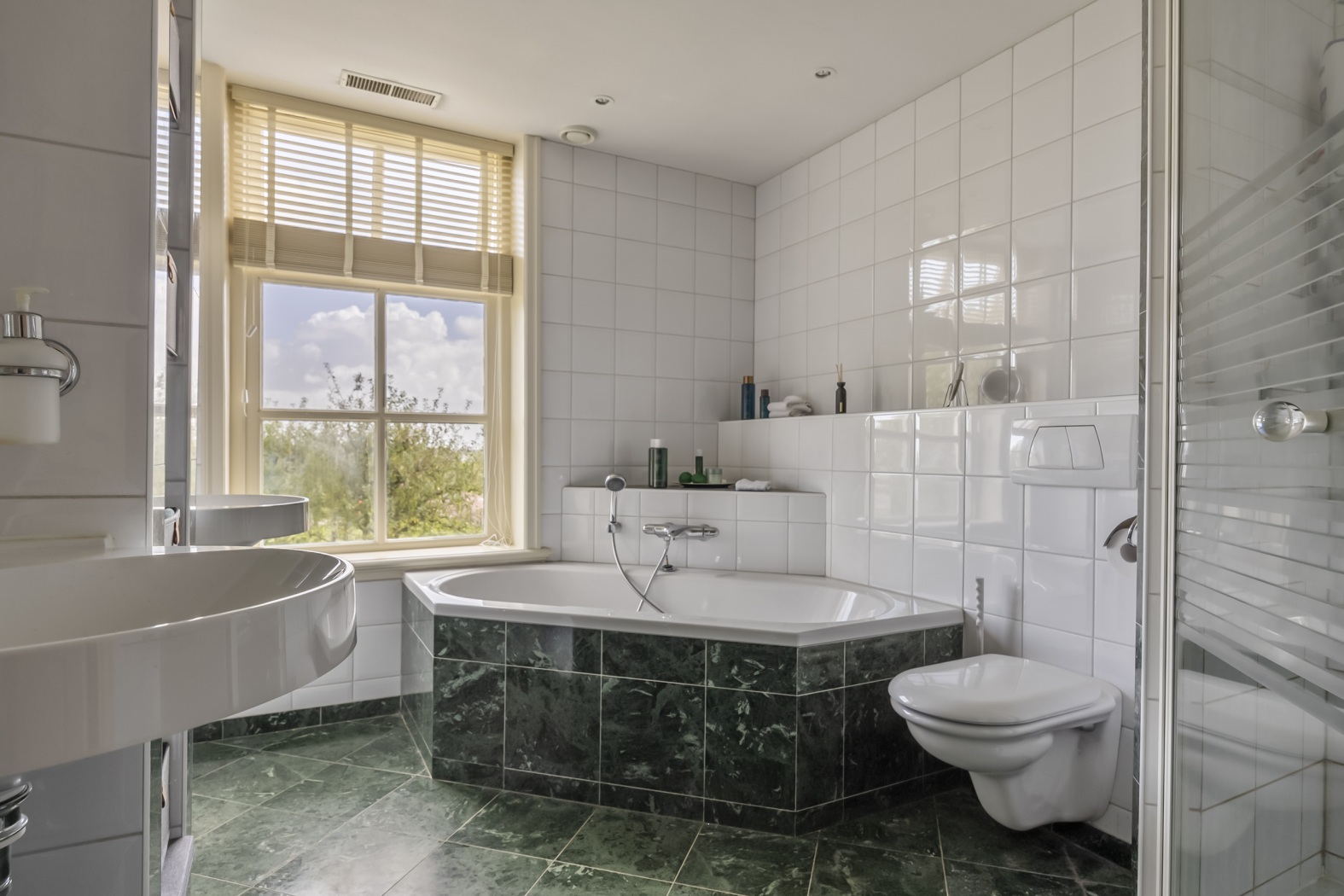 Op de eerste verdieping bevinden zich een overloop, separaat toilet en maar liefst vijf slaapkamers. De masterbedroom met kleedkamer biedt schitterend uitzicht over de rivier en beschikt over een eigen luxe badkamer met hoekligbad, douchecabine, toilet en dubbele wastafel. De tweede badkamer is eveneens ruim en voorzien van een ligbad, douche en dubbele wastafel.
