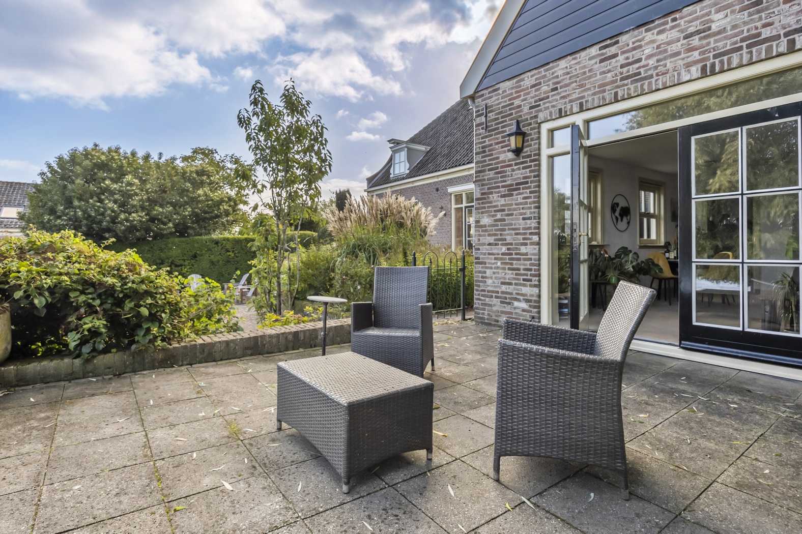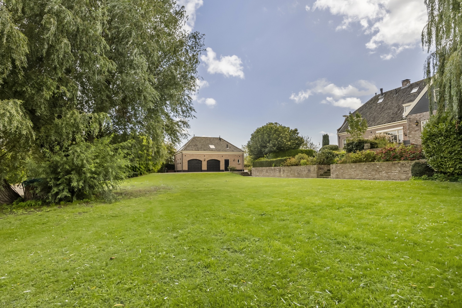 Naast het veerhuis bevinden zich een dubbele garage met studio en een sfeervol gastenverblijf. Ideaal voor logees, een atelier of een werkruimte. Dankzij de royale opzet lenen de bijgebouwen zich bovendien uitstekend voor meergeneratie wonen, bijvoorbeeld voor inwonende ouders of een thuiswonend kind.