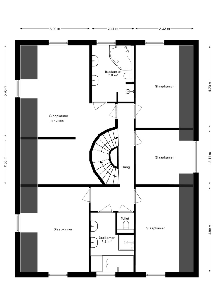 Vijf slaapkamers en twee badkamers