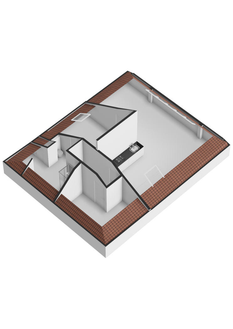Hier bevinden zich nog twee slaapkamers (nr. 6 en 7), beide met dakramen, waarvan één met praktische vaste kast.