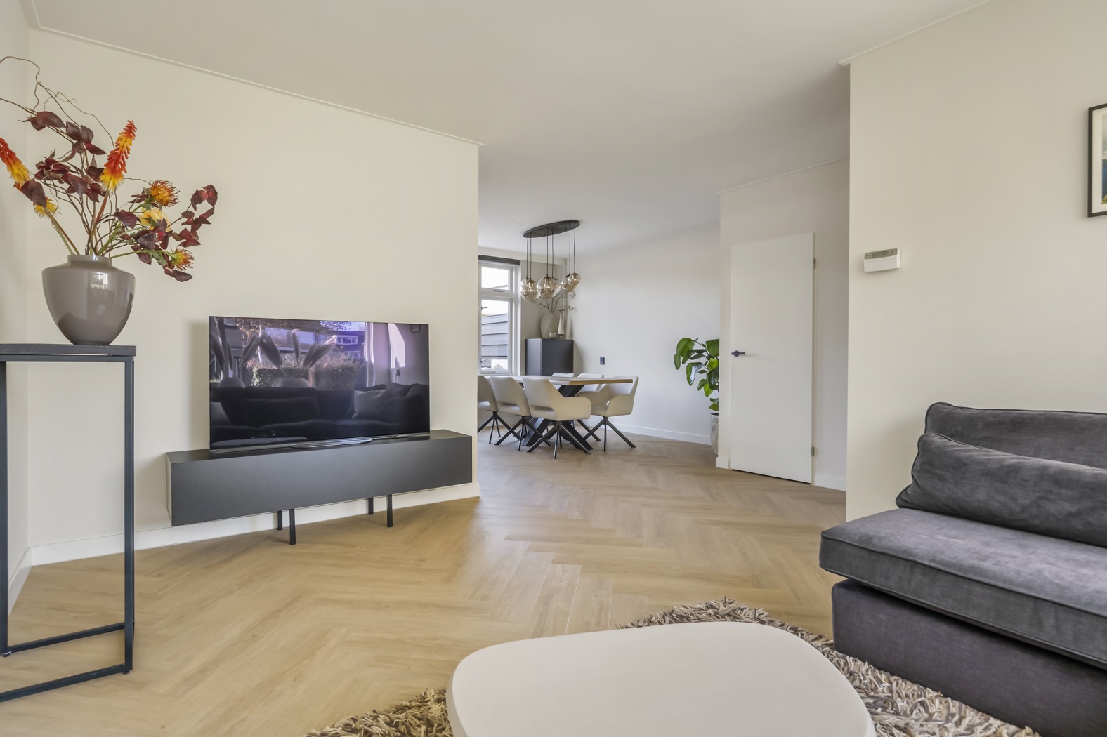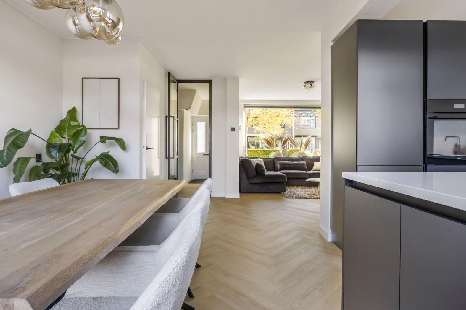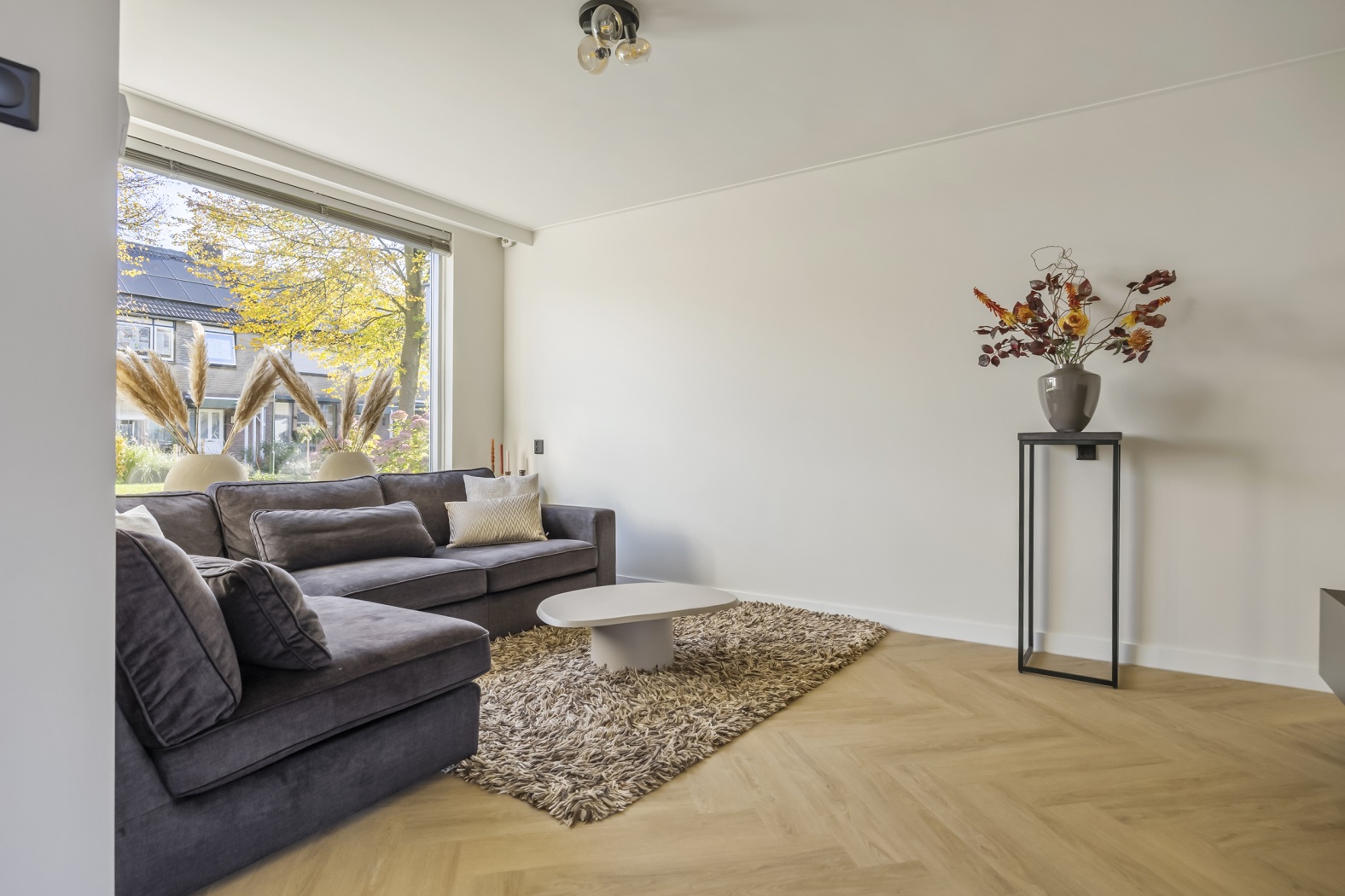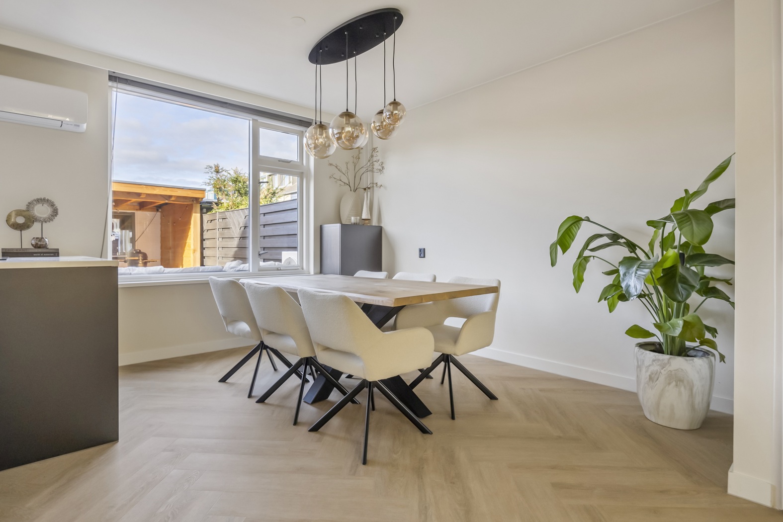 De gehele woonverdieping is in 2024 vernieuwd en dat zie én voel je: een prachtige PVC-visgraatvloer die warm aanvoelt door de vloerverwarming eronder, strakke wanden en plafonds waar de verf nog maar net droog op lijkt, en alles solide afgewerkt. Dit is een woonkamer waarin je meteen kunt neerploffen en je thuis voelt, zonder aan één klus te hoeven denken.
