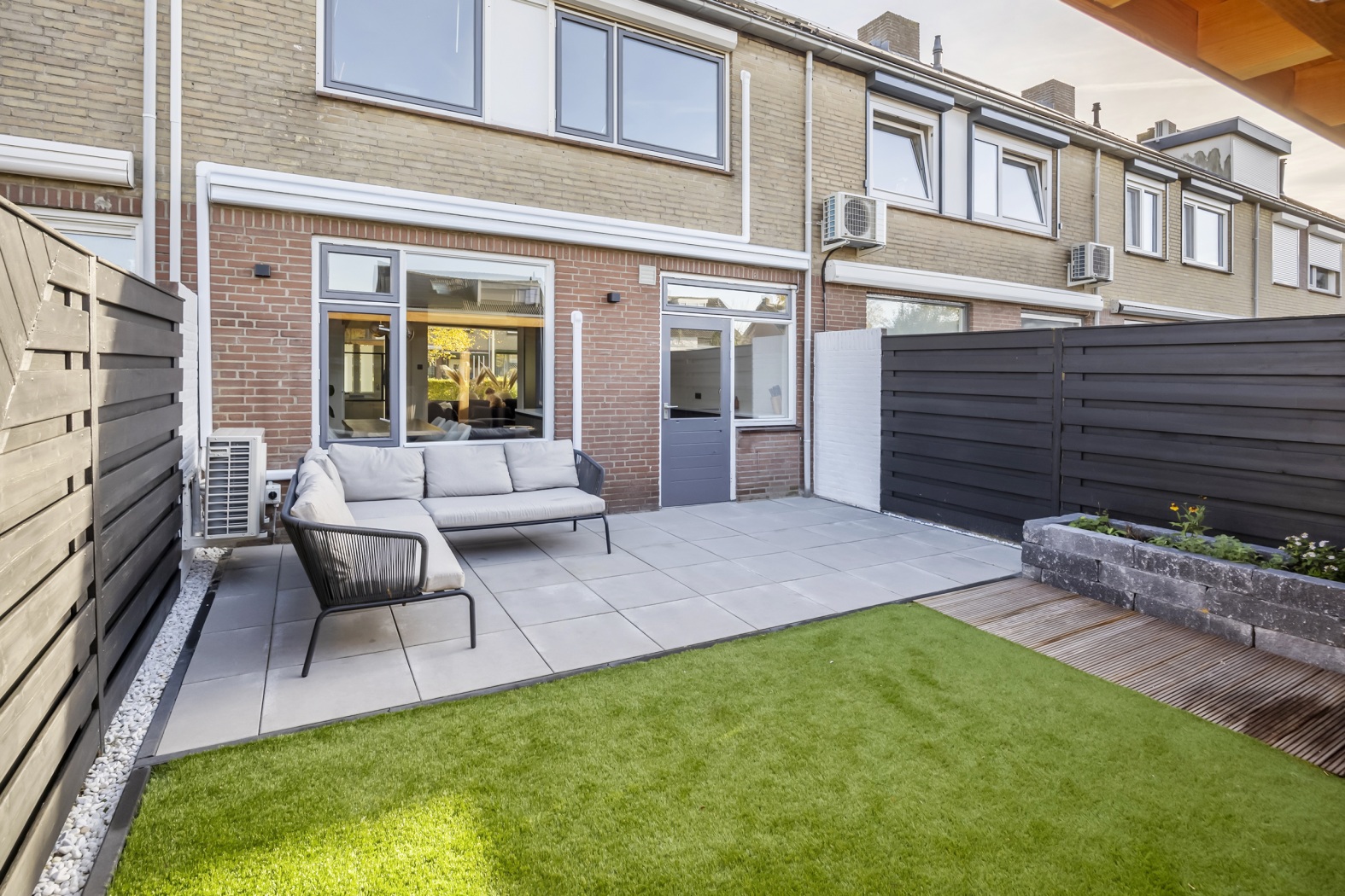 De tuin is in 2025 volledig opnieuw aangelegd en dat zie je meteen: fris, sfeervol én gebruiksklaar. Het terras met zonnescherm biedt een fijne plek om te zitten, het strakke kunstgras zorgt voor een altijd groene uitstraling en de verhoogde plantenbak geeft de tuin net dat beetje extra zonder dat je meteen groene vingers hoeft te hebben.