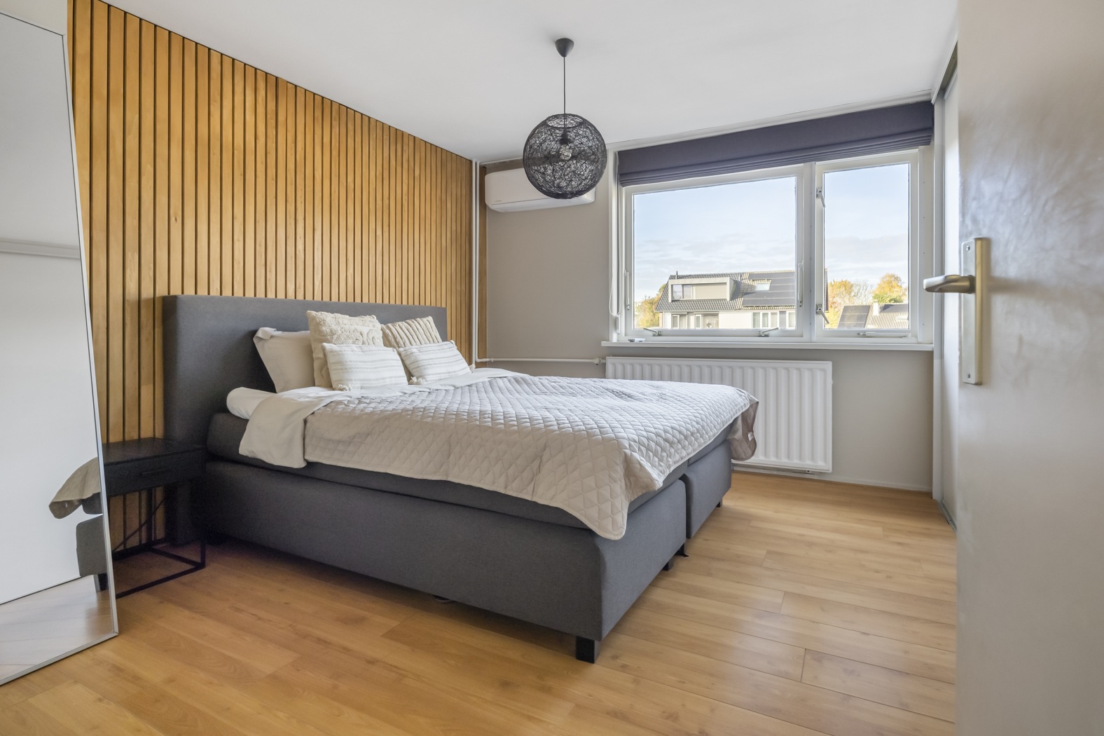 Twee slaapkamers liggen aan de achterzijde en de derde, royale kamer bevindt zich aan de voorzijde. De hoofdslaapkamer is uitgerust met een stijlvolle schuifwandkast en airconditioning, zodat het hier altijd aangenaam slapen is — zomer én winter. Bovendien zijn alle slaapkamers voorzien van rolluiken, ideaal voor donker slapen, uitslapen en extra privacy.