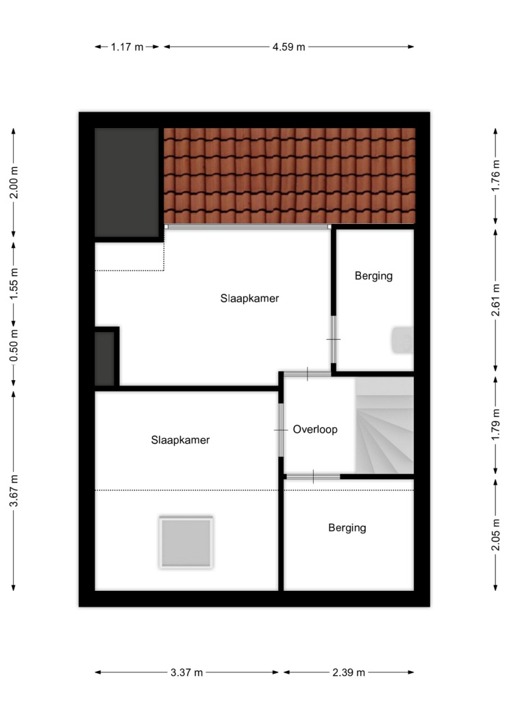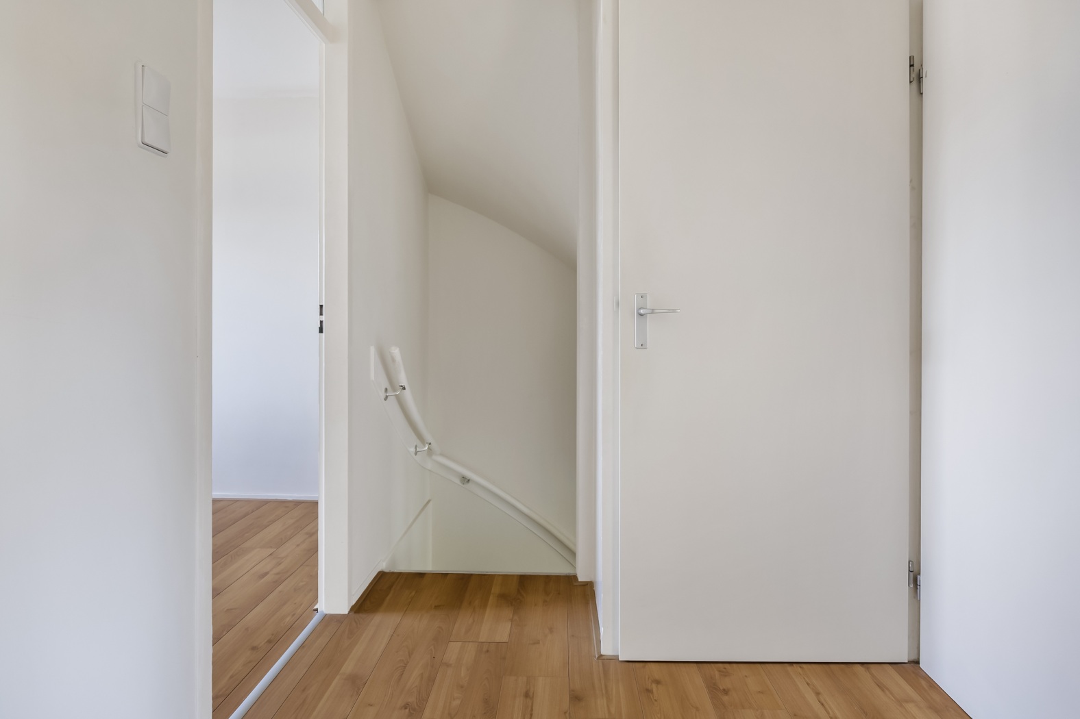 Op de tweede verdieping kom je op een lichte overloop met twee praktische opbergruimtes: een bergkast waarin de cv-installatie is weggewerkt en een ruime extra bergkast. Daarnaast bevinden zich hier twee volwaardige kamers, waarvan één met een dakraam en één met een grote dakkapel aan de achterzijde. Deze kamers zijn ideaal te gebruiken als extra slaapkamers, werkkamers of bijvoorbeeld een eigen gym of hobbyruimte.