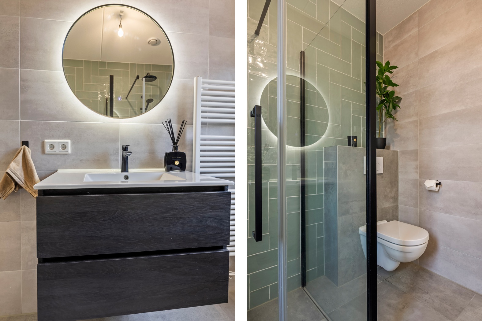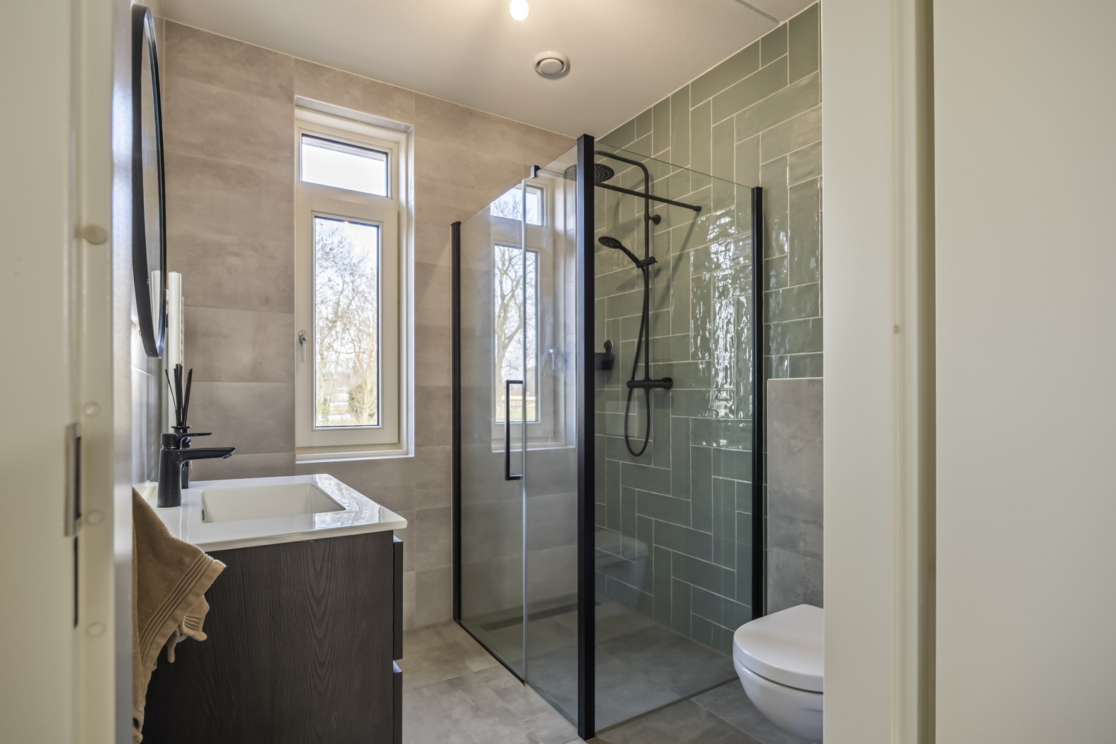 Op de eerste verdieping bevinden zich drie slaapkamers: twee ruime kamers en een kleinere kamer, perfect als werk-, kinder- of kleedkamer. Alle kamers zijn voorzien van grote raampartijen wat zorgt voor een licht en open gevoel. De badkamer is ruim van opzet en luxe afgewerkt met een grote regendouche, wastafel en toilet. Een extra voordeel van deze ruimte is dat de badkamer beschikt over een raam, dit zorgt niet alleen voor daglicht maar ook voor extra ventilatie, en dus extra woongemak. Zowel de begane grond als de eerste verdieping zijn voorzien van comfortabele vloerverwarming, deze kan ook koelen wat in de zomer voor extra wooncomfort zorgt.