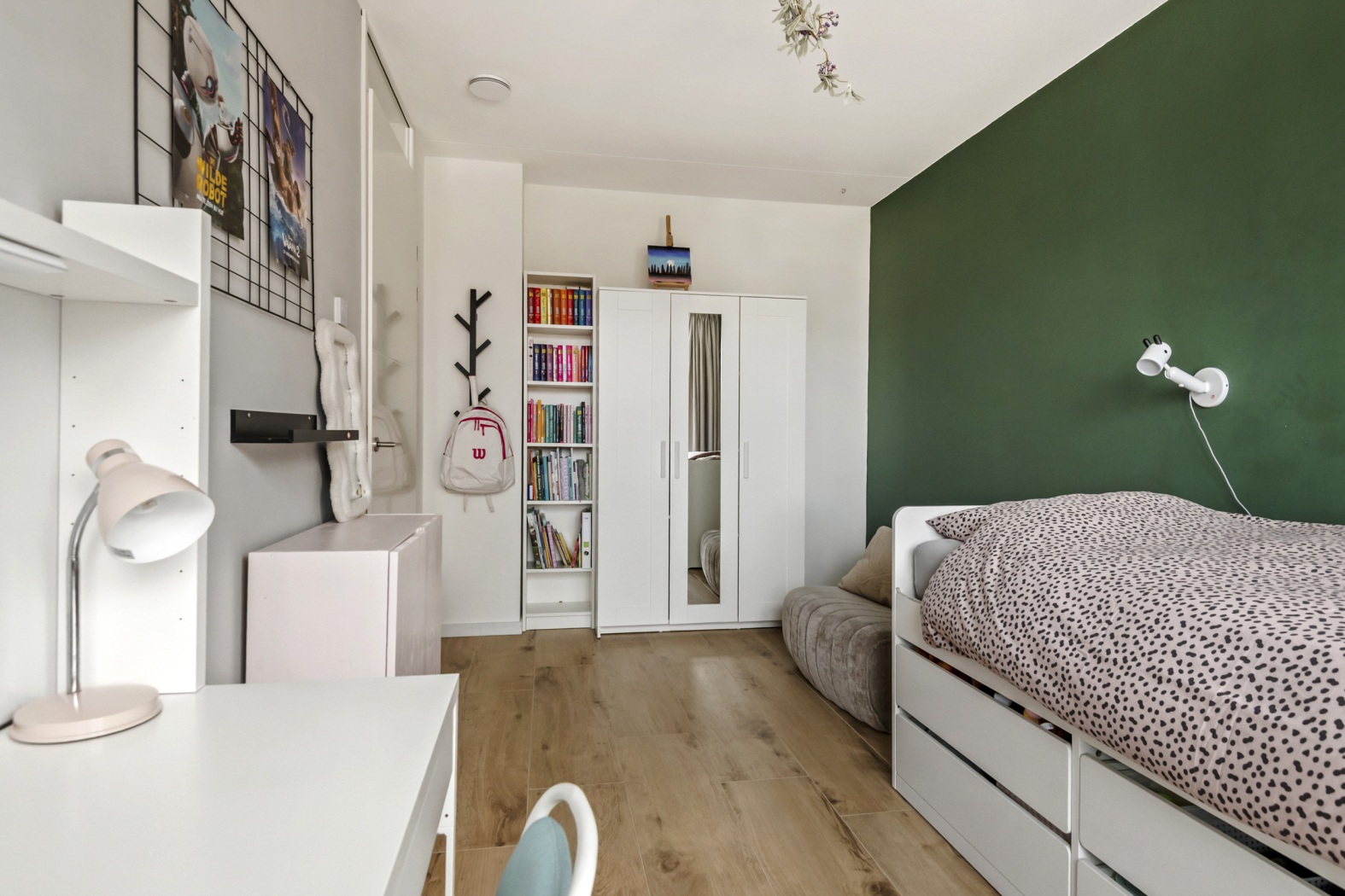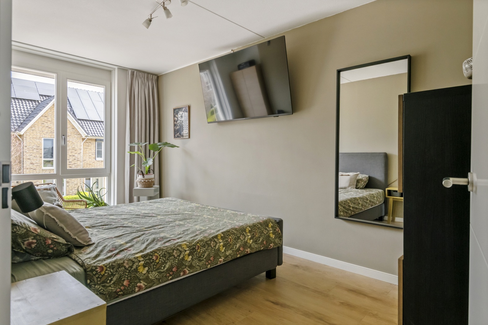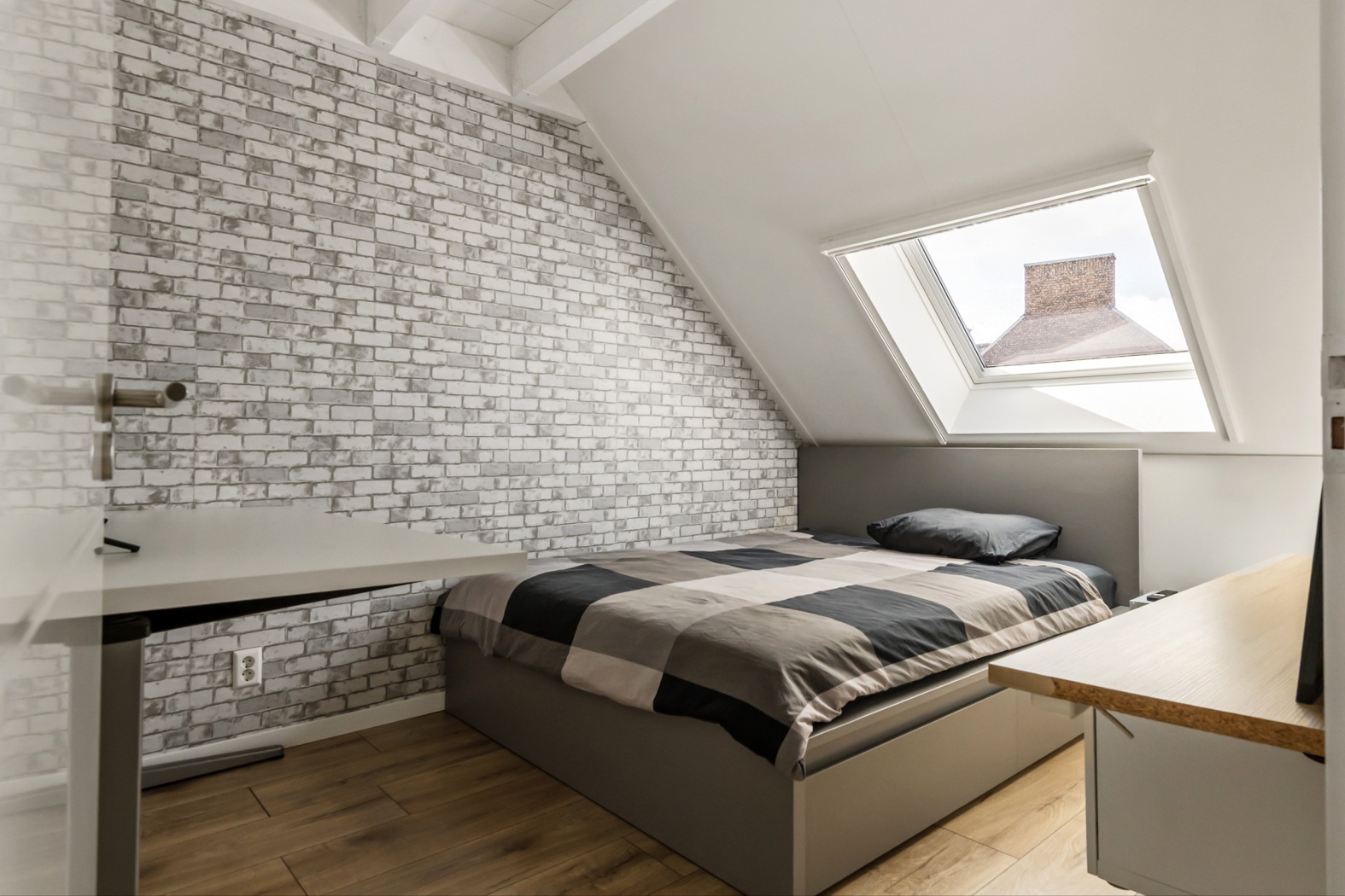 Vanaf de overloop heb je toegang tot twee fijne slaapkamers, beide voorzien van dakramen die zorgen voor een lichte en prettige sfeer. Eén van de kamers springt eruit door de speelse, uitspringende kap met puntdak en dakraam, wat zorgt voor extra karakter en een knusse uitstraling.