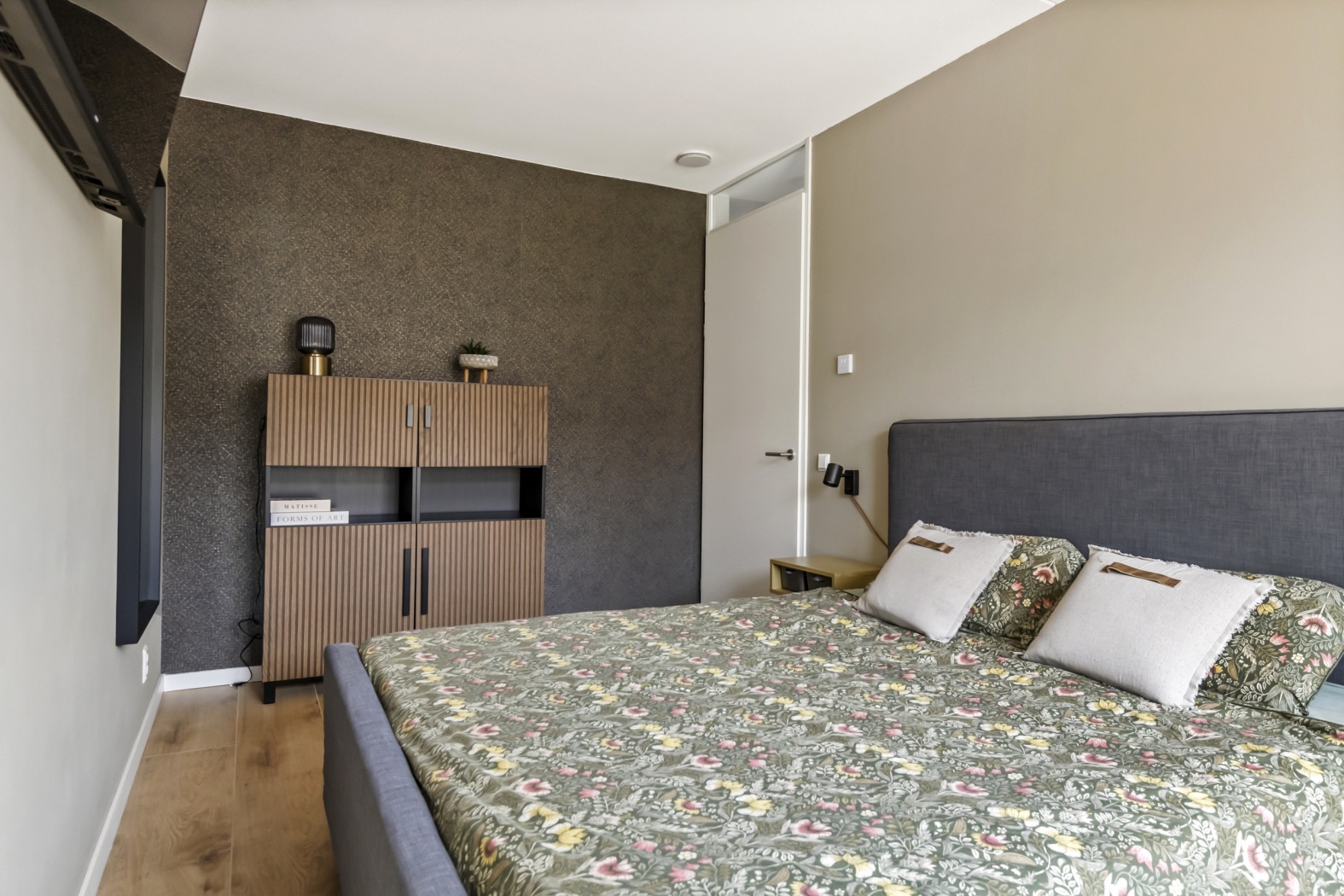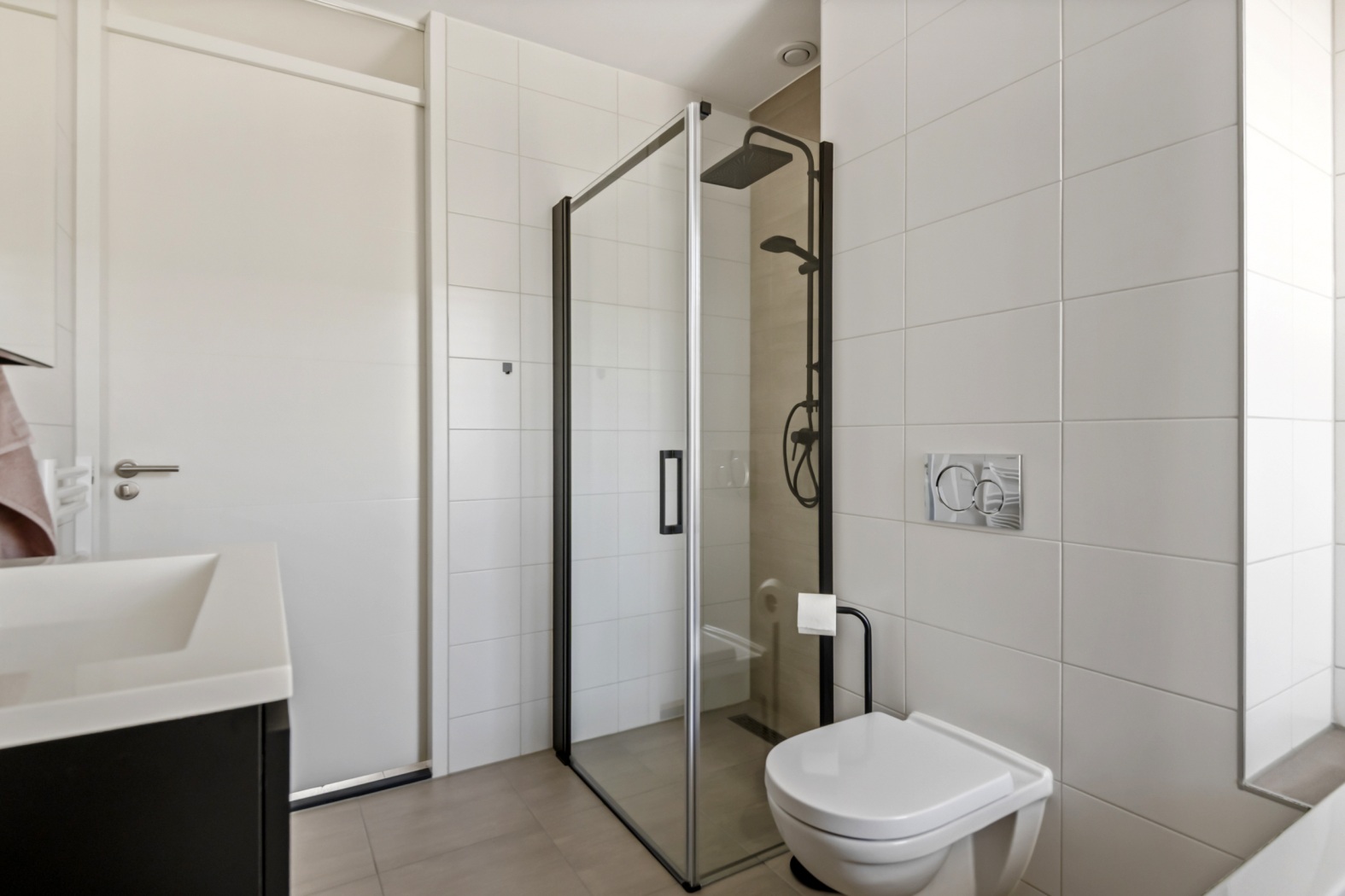 De volledige verdieping is hoogwaardig afgewerkt met een stijlvolle tegelvloer in plankformaat, gecombineerd met zowel vloerverwarming als vloerkoeling. Hierdoor geniet je het hele jaar door van een aangenaam en comfortabel binnenklimaat.