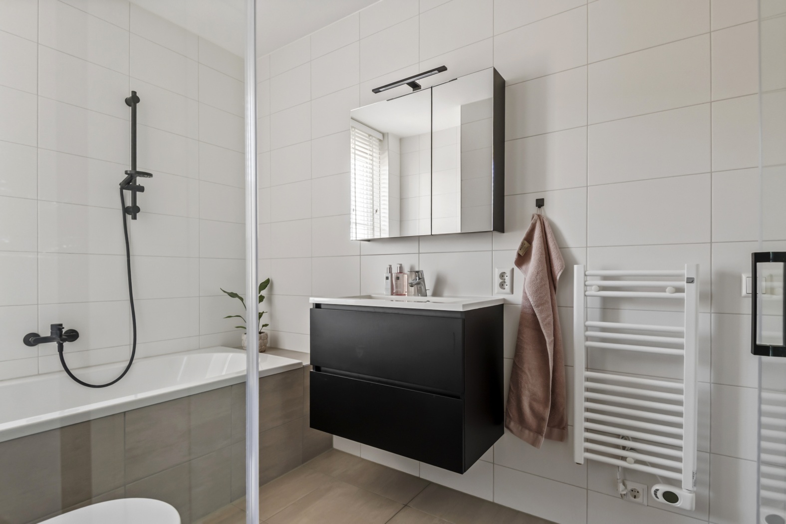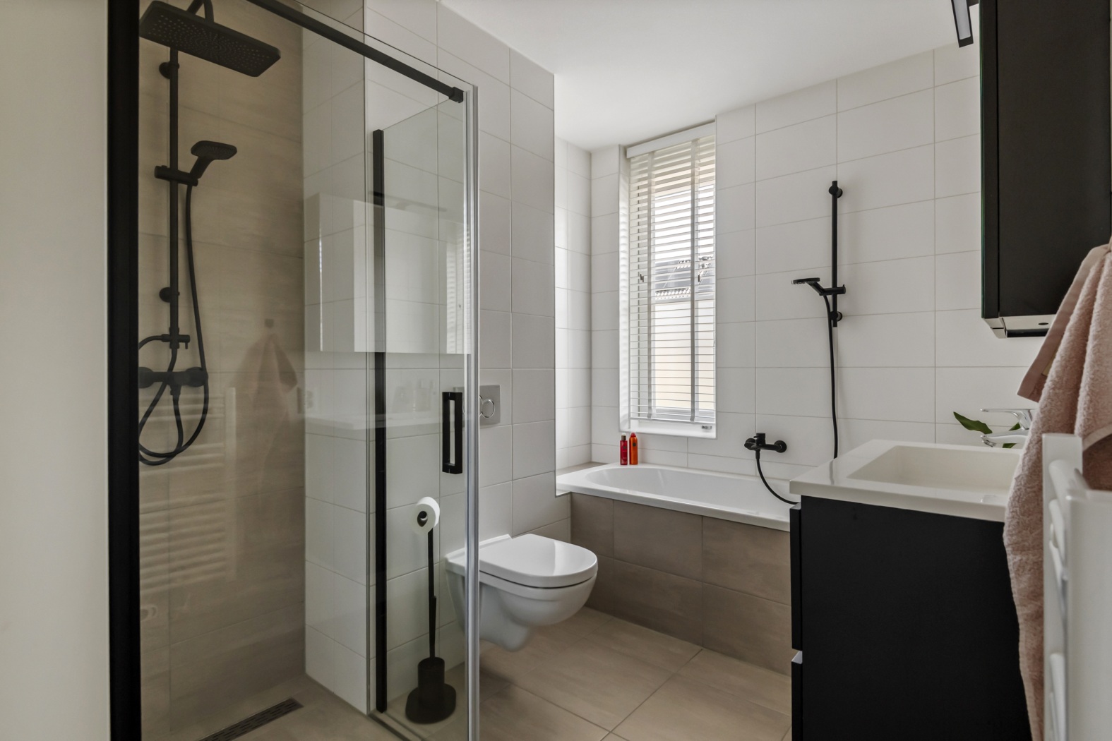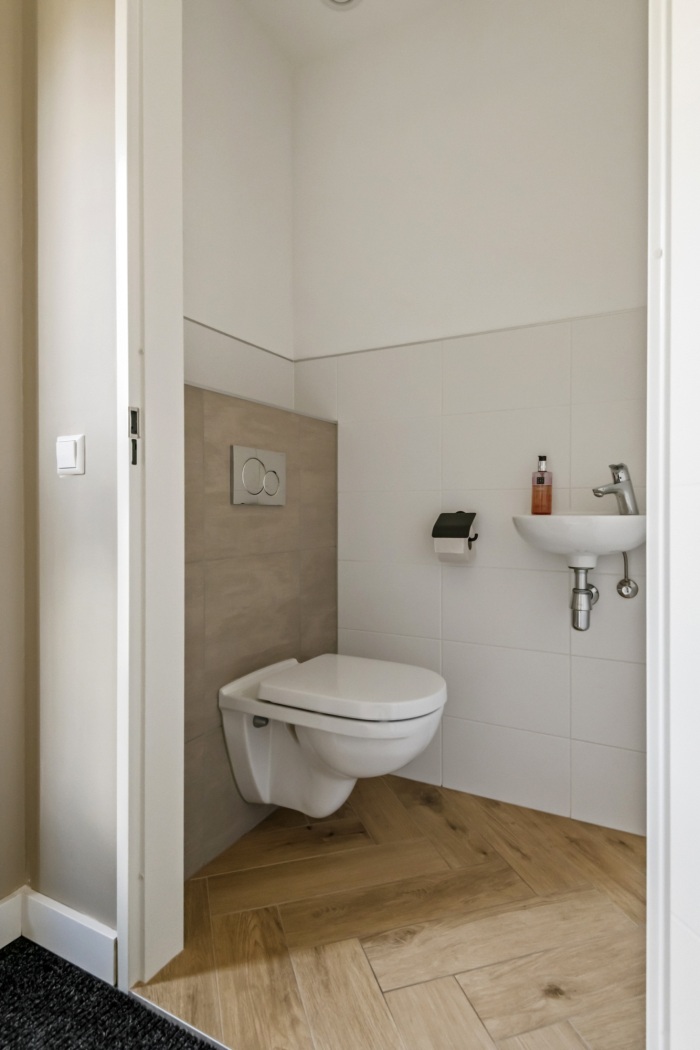 De badkamer vormt een stijlvolle en comfortabele ruimte waarin iedereen zich direct thuis voelt, mede dankzij de fraai gekozen vloer- en wandtegels. Ontspan in alle rust in het heerlijke ligbad of kies voor een verkwikkende douche in de cabine, voorzien van zowel een regendouche als handdouche. Daarnaast beschikt de badkamer over een modern wastafelmeubel, een elegante designradiator en een tweede zwevend toilet. Een plek waar elke dag begint en eindigt in pure luxe.