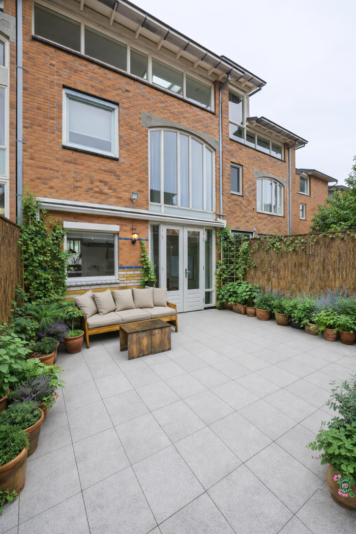 De tuin is gelegen op het noordwesten en biedt een fijne plek om te ontspannen en te genieten van het buitenleven. De achterom en de berging achterin de tuin maken de tuin praktisch in gebruik, ideaal voor het stallen van fietsen of het opbergen van tuinspullen. De tuinfoto’s zijn licht bewerkt met groen om een beeld te geven van hoe de tuin er in de zomerperiode uit kan zien.