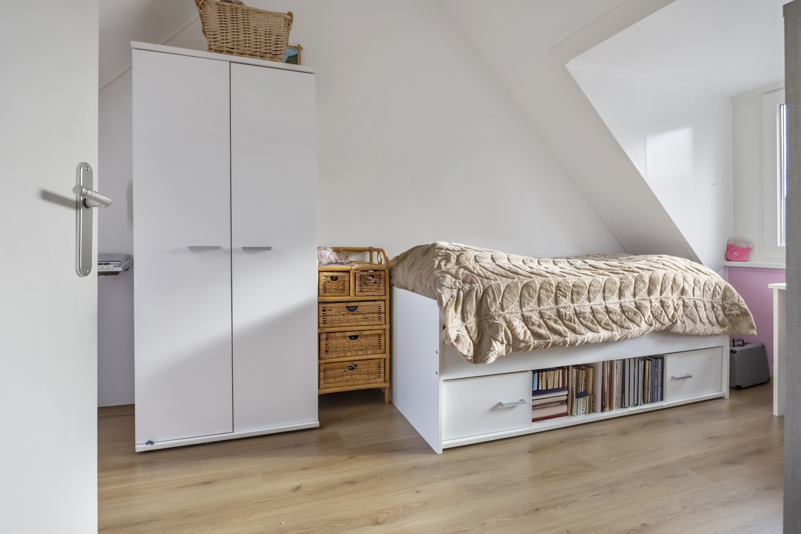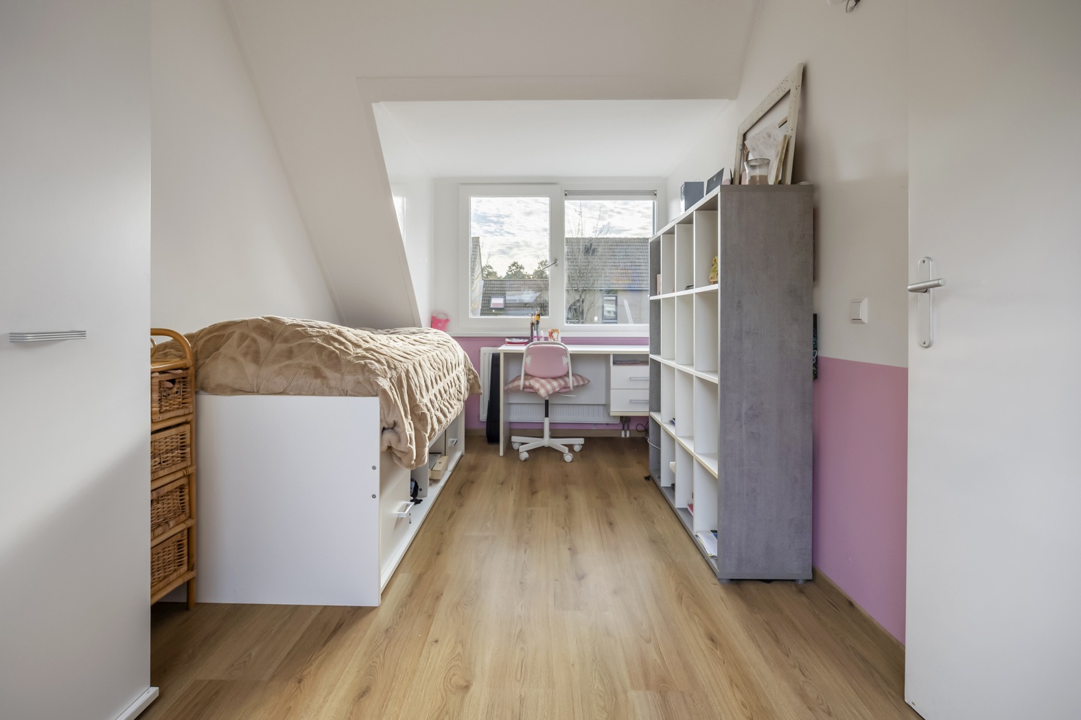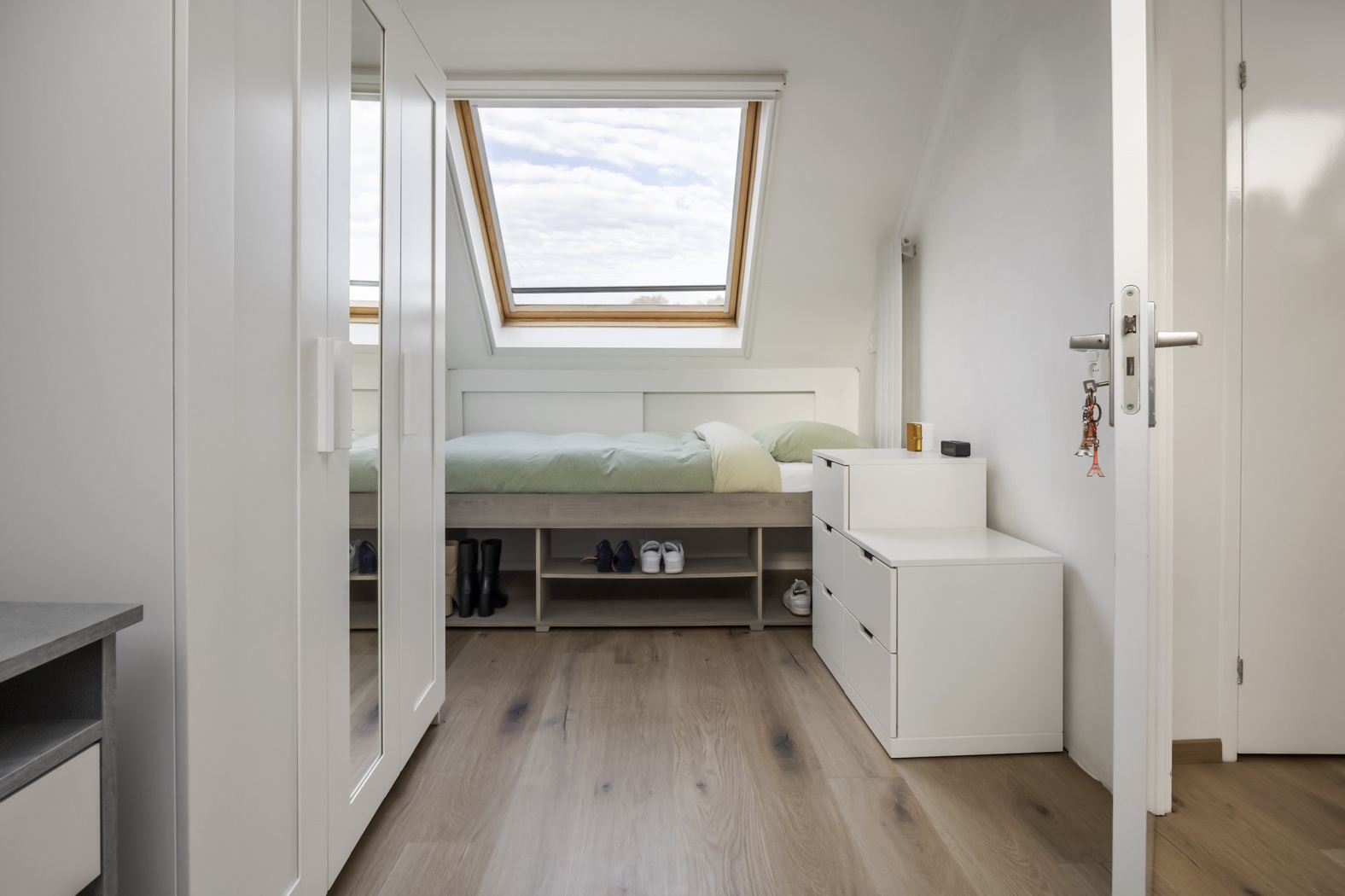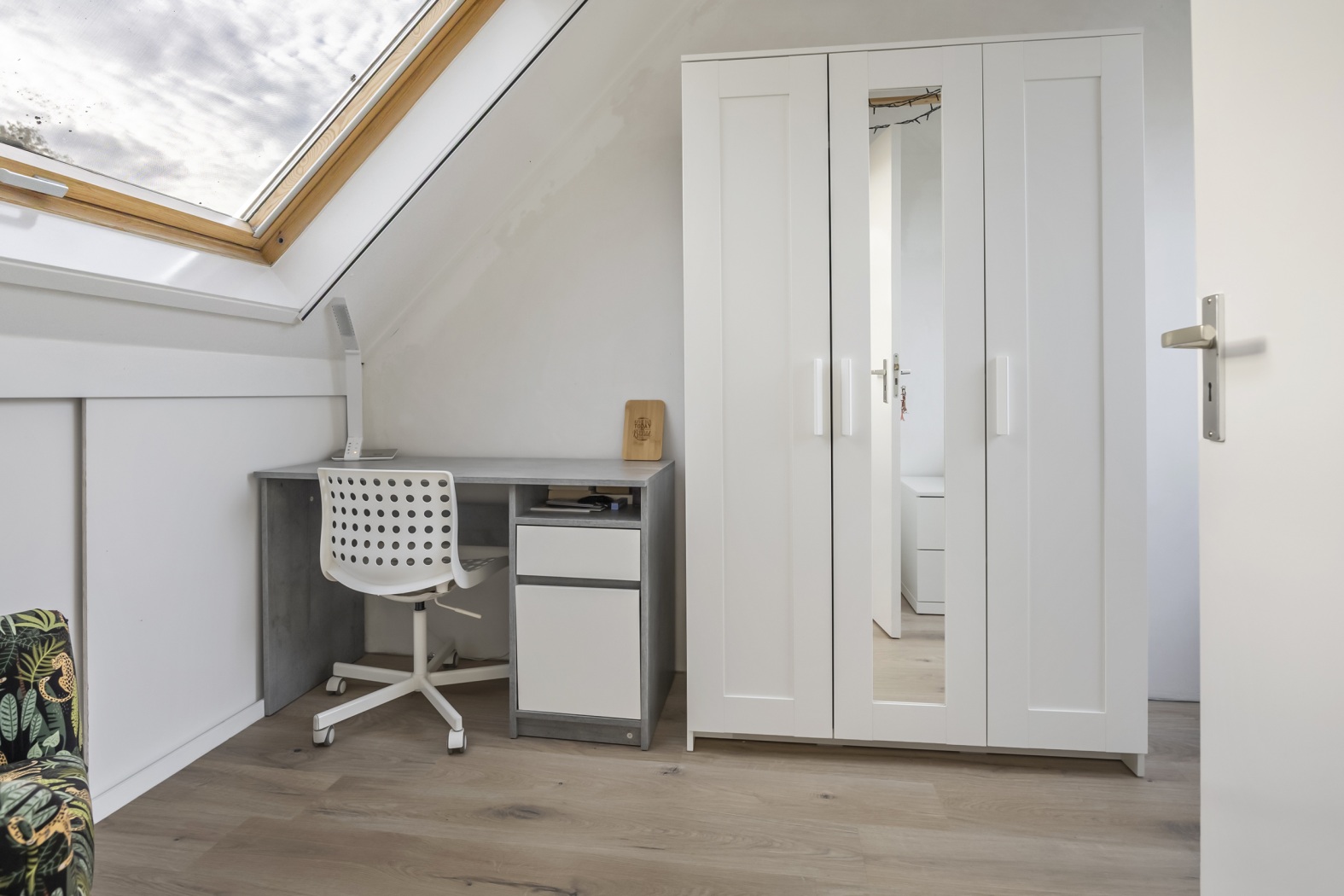 Daarnaast bevindt zich op deze verdieping een extra slaapkamer, voorzien van twee dakramen die zorgen voor een prettige hoeveelheid daglicht. Deze kamer is goed te gebruiken als slaapkamer, werkruimte of hobbykamer. Daarmee vormt de tweede verdieping een waardevolle toevoeging aan de leefruimte van de woning.