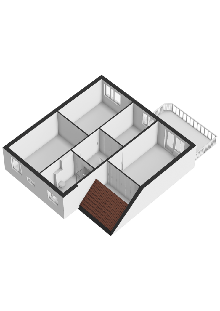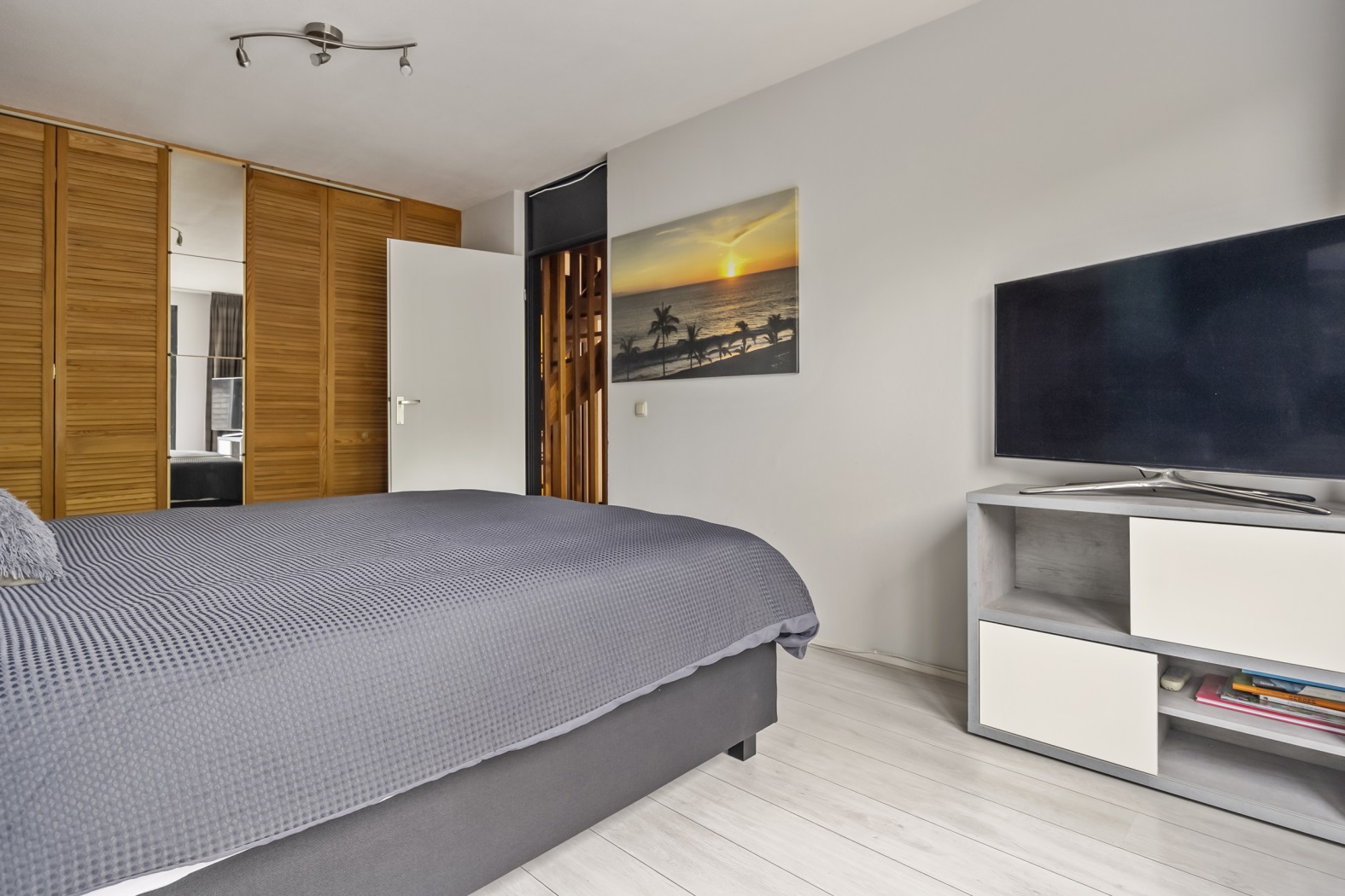 Op de eerste verdieping tref je maar liefst vier slaapkamers: één aan de voorzijde en drie aan de achterzijde. De achterste slaapkamer heeft direct toegang tot een zonnig dakterras van circa 13 m² op het zuiden – een perfecte plek om in alle rust te werken, te relaxen of gewoon te genieten van het uitzicht.