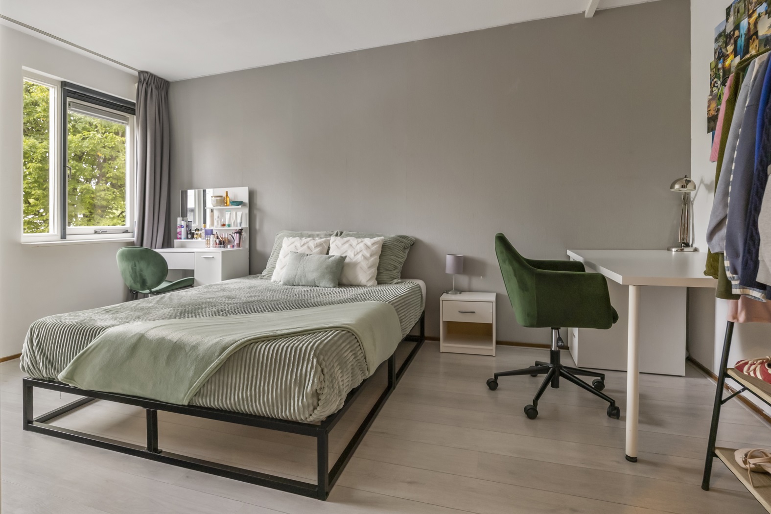De tweede verdieping is verrassend ruim en extra hoog dankzij de kapconstructie. Vanaf de overloop heb je toegang tot een handige bergruimte met de cv-installatie en aansluitingen voor wasmachine en droger. Daarnaast vind je hier twee volwaardige, hoge slaapkamers – één aan de voorzijde en één aan de achterzijde – beide voorzien van een lichtraam. Dankzij de slimme indeling is er bovendien volop kastruimte aanwezig. Een ideale verdieping voor bijvoorbeeld een werkplek, tienerkamer of logeerkamer.