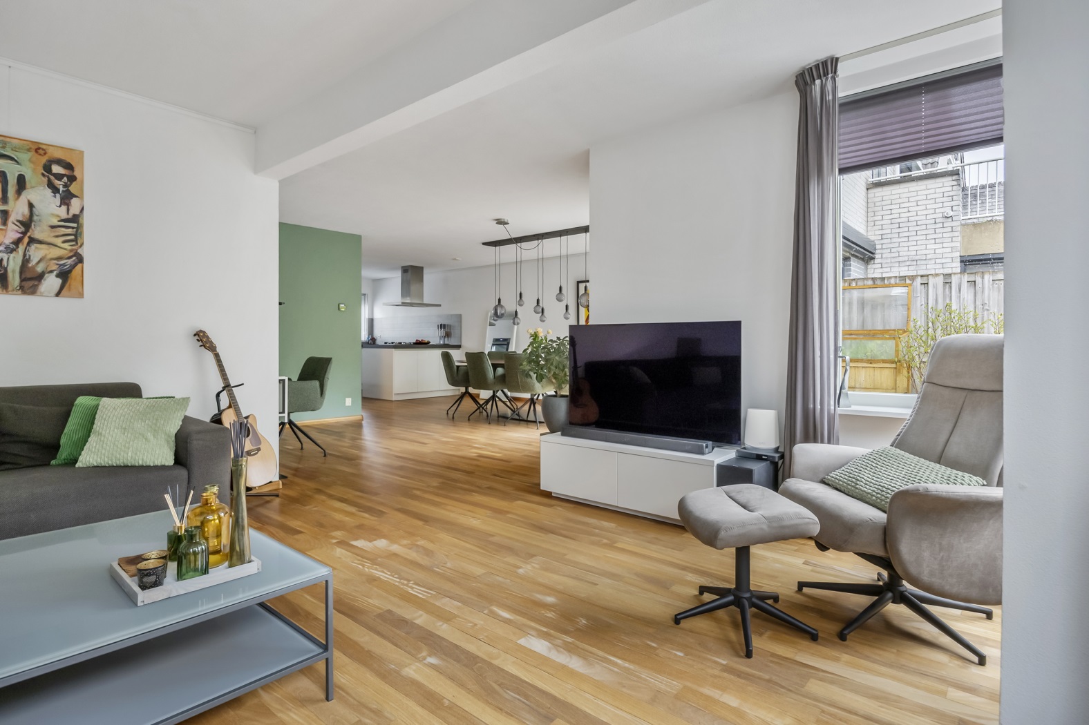 De woonkamer van maar liefst 57 m² is heerlijk royaal en verrassend speels ingedeeld. Via de schuifpui heb je een directe verbinding met de tuin, terwijl de ruimte zich achter de garage verdiept doorzet naar een gezellige hoek met erkerraam – perfect als zitkamer of tv-hoek. Hier vind je plek voor lange filmavonden of juist een knusse leesplek.