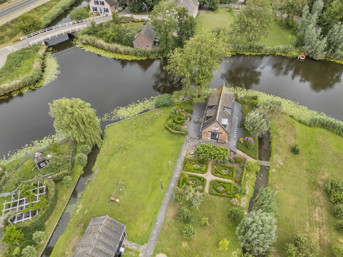 Rondom de woning kun je meerdere terrassen en zithoeken creëren, waar je elk moment van de dag kunt kiezen voor zon of schaduw. Of je nu 's ochtends in alle rust een kop koffie drinkt aan het water, of 's avonds met vrienden een goed glas wijn deelt. De vrijstaande stenen schuur van 29 m² is een waardevolle toevoeging: een geweldige plek voor hobbyisten of het opbergen van tuinmateriaal