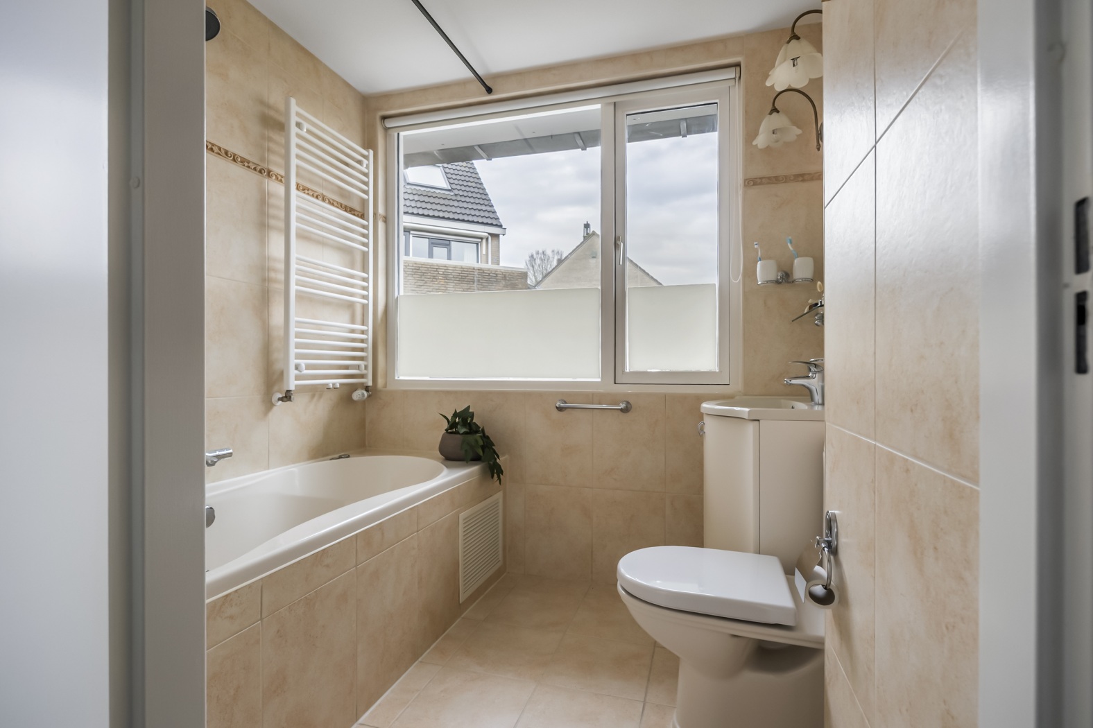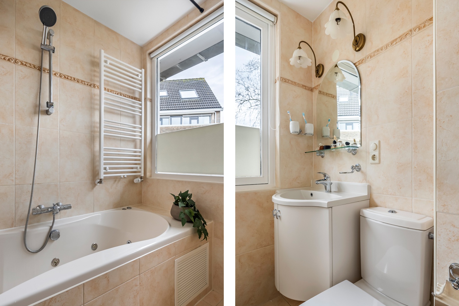 * Badkamer met ligbad, toilet en wastafelmeubel