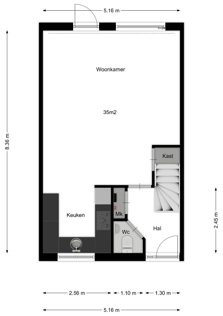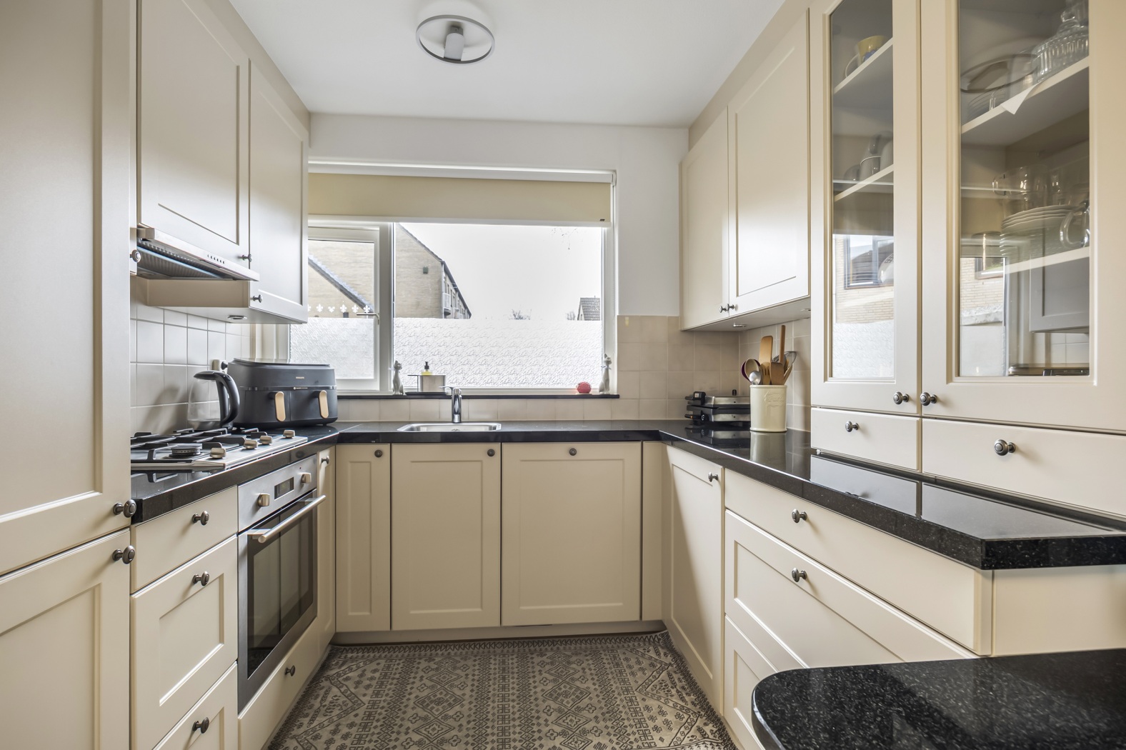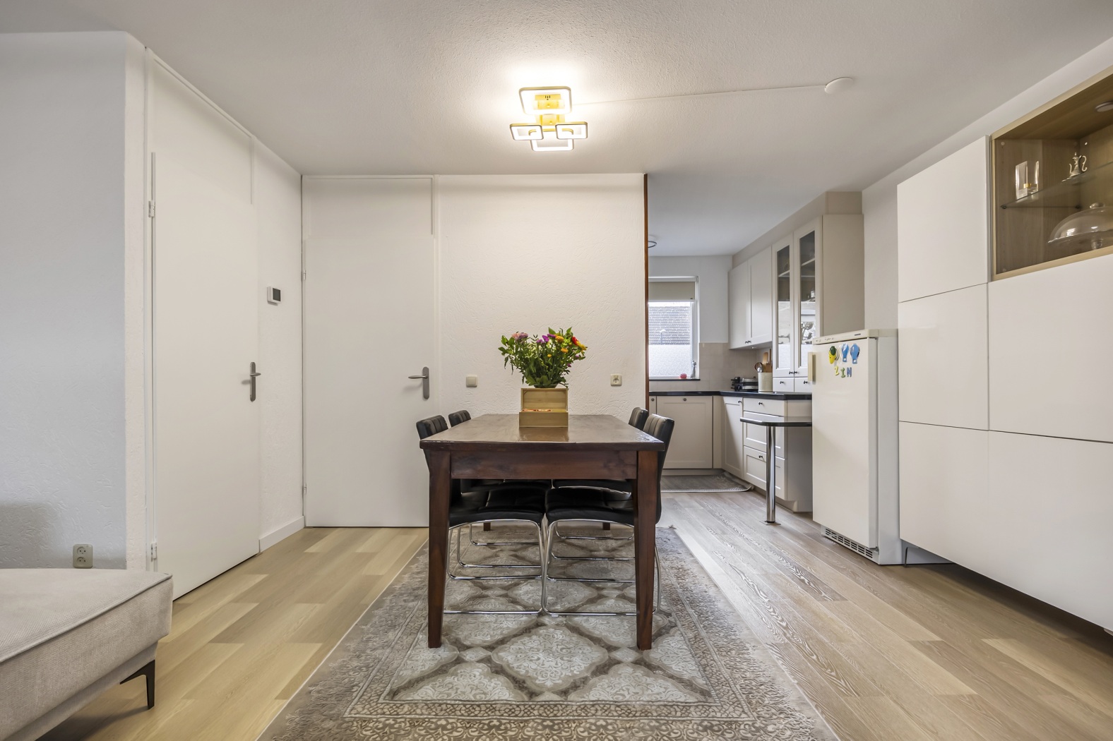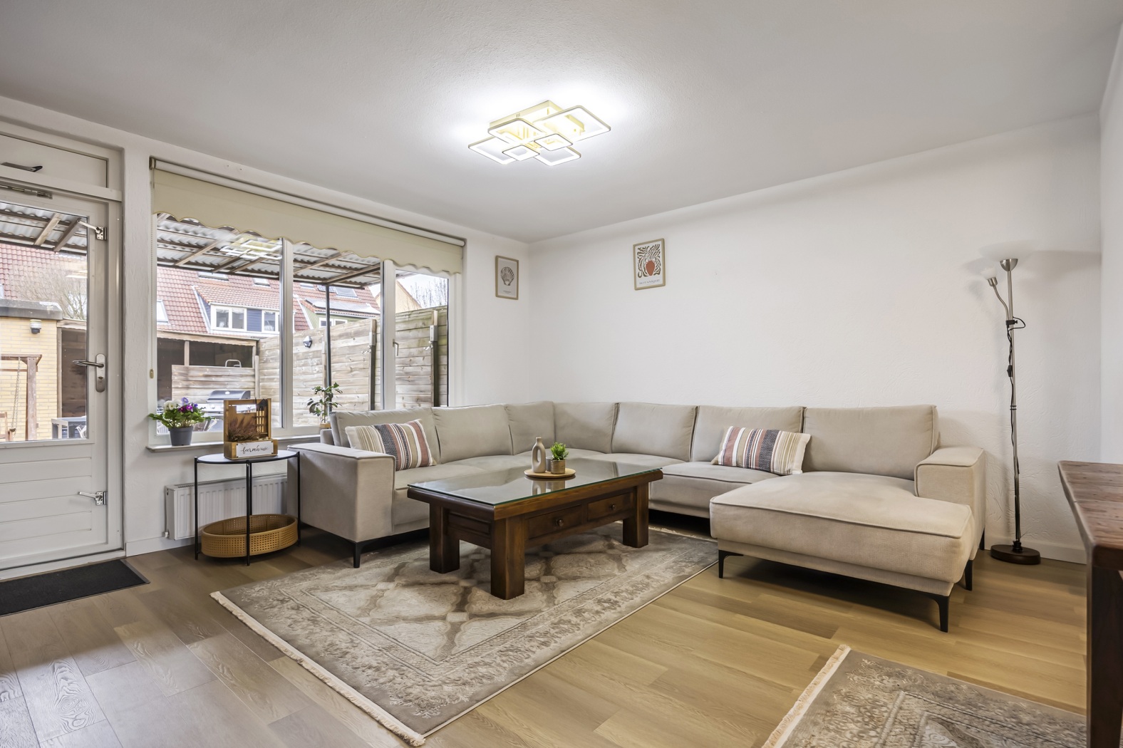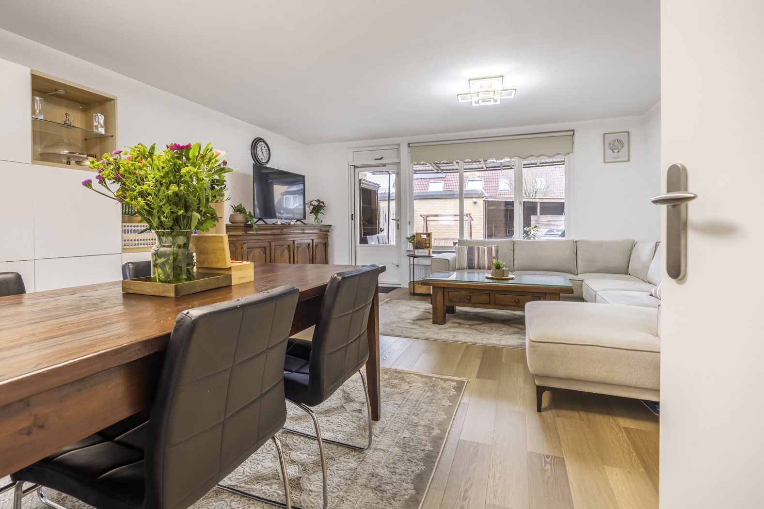 De woonkamer is ruim en licht en vormt samen met de open keuken een gezellige leefruimte waar koken, eten en ontspannen moeiteloos samenkomen. Vanuit de woonkamer stap je direct de achtertuin in, wat zorgt voor een fijne verbinding tussen binnen en buiten.
