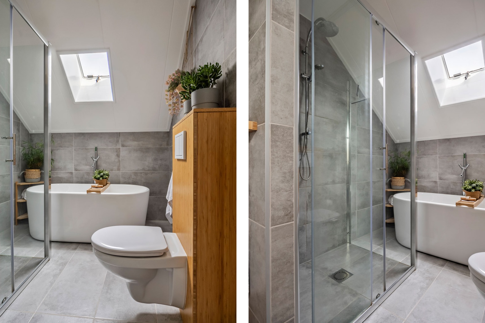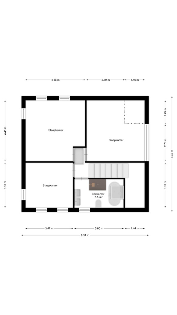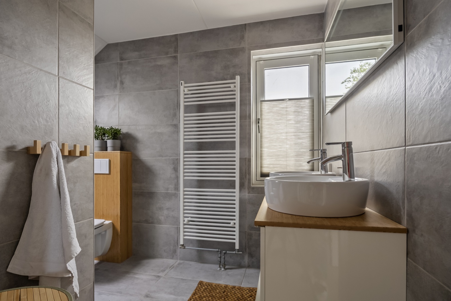 Op de verdieping liggen drie ruime slaapkamers en een badkamer uit 2017, voorzien van een ligbad, inloopdouche, dubbele wastafel en tweede toilet. Dankzij de rolluiken op alle ramen ervaar je hier extra privacy en comfort.