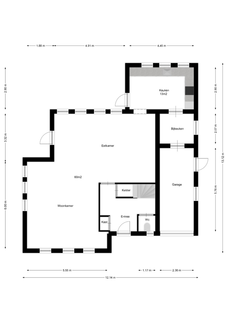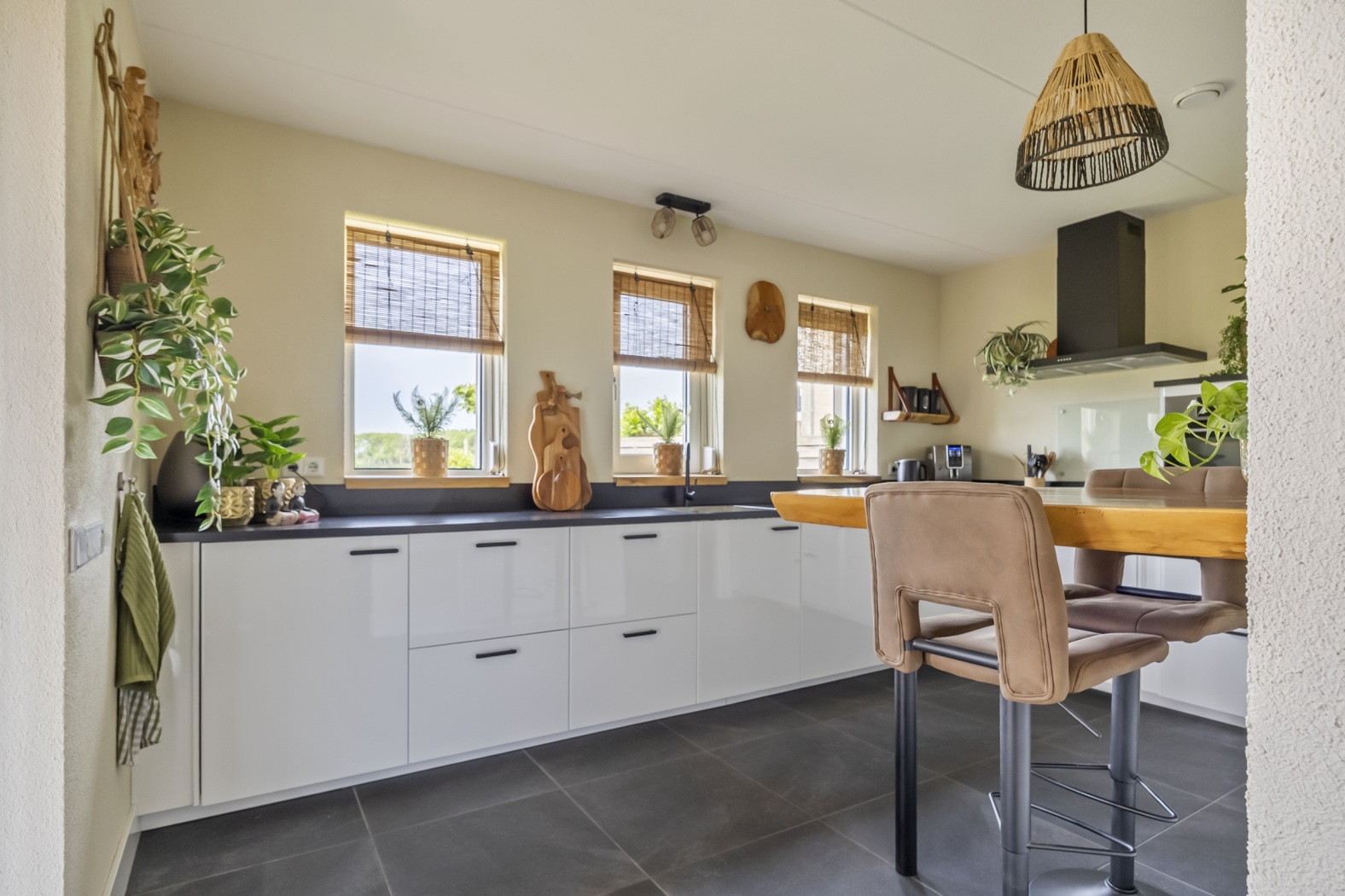 Bij binnenkomst valt meteen de lichte en ruime woonkamer van circa 60 m² op, die uitnodigt tot gezellige zithoeken. De moderne keuken, vernieuwd in 2016, sluit hier mooi op aan en is volledig ingericht met hedendaags comfort. Vanuit de hal zijn zowel het toilet, een praktische kast als de kelder bereikbaar en achter de garage bevindt zich de handige bijkeuken.