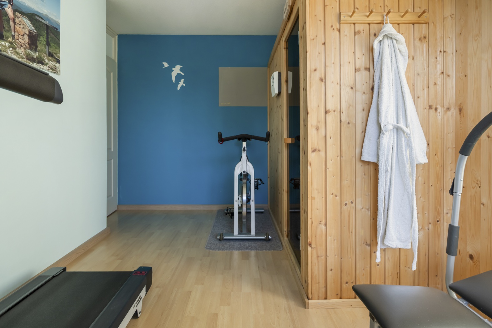 •1e verdieping: 3 slaapkamers, waaronder een (sport-)kamer met sauna