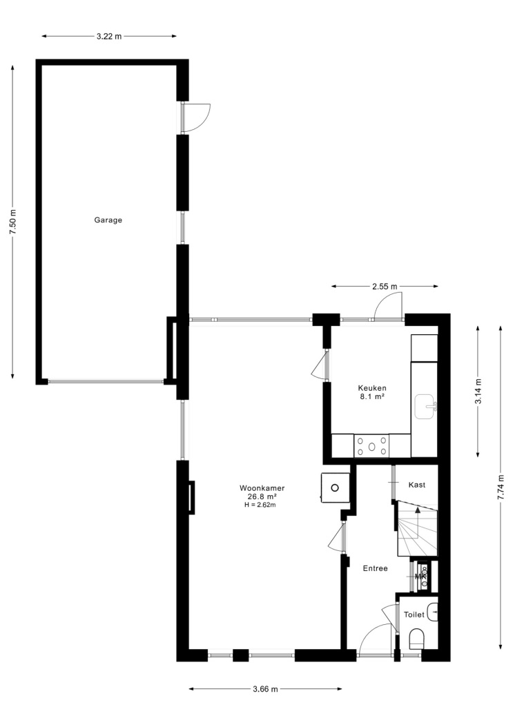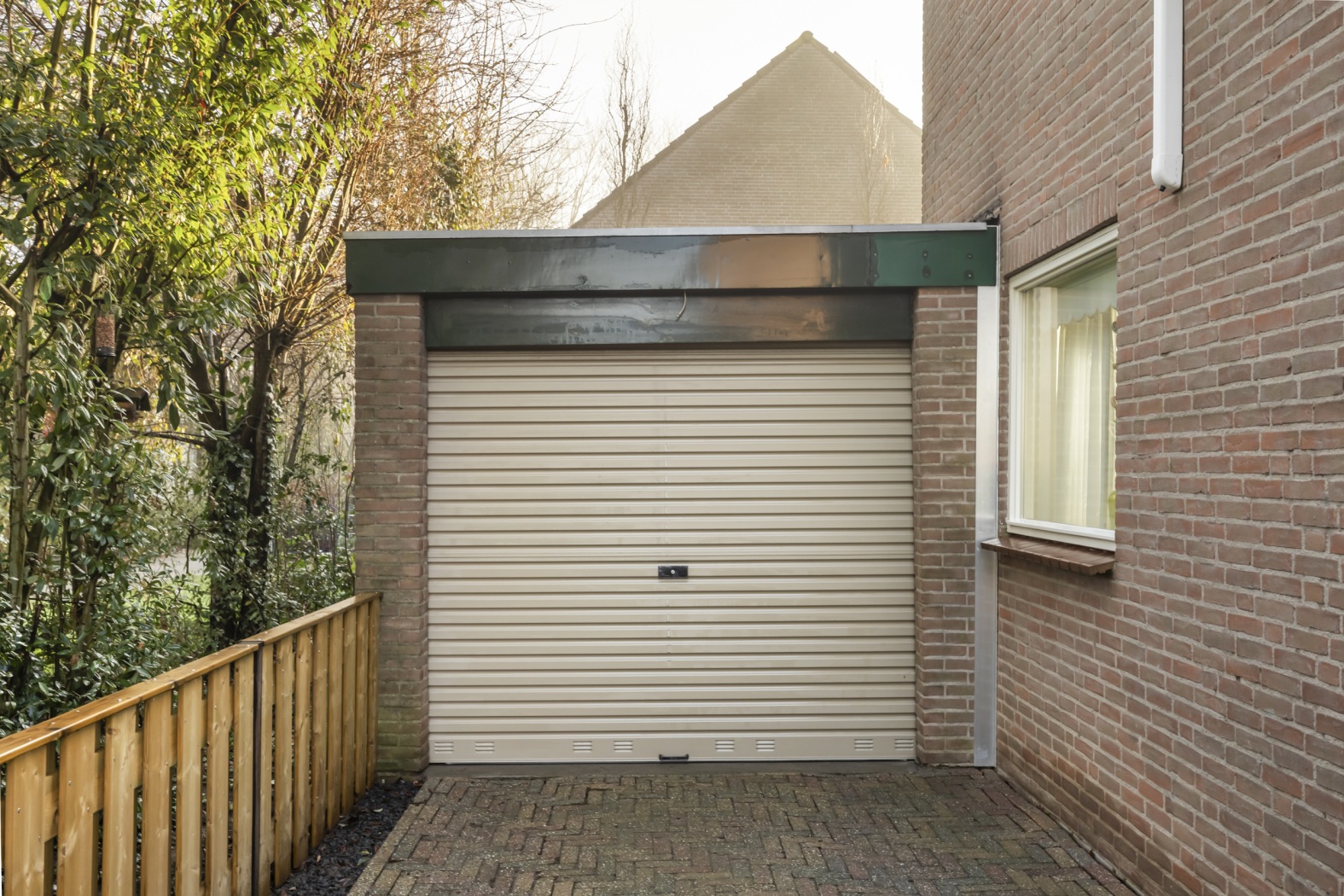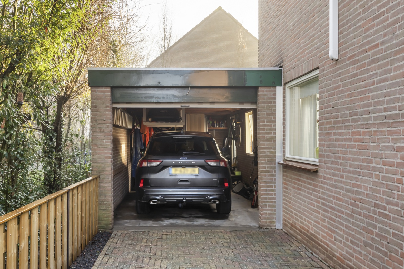 De aangebouwde stenen garage (ca. 24 m²) is voorzien van een roldeur aan de voorzijde, een raam en een loopdeur naar de tuin. Op de oprit aan de voorzijde kun je bovendien parkeren op eigen terrein.