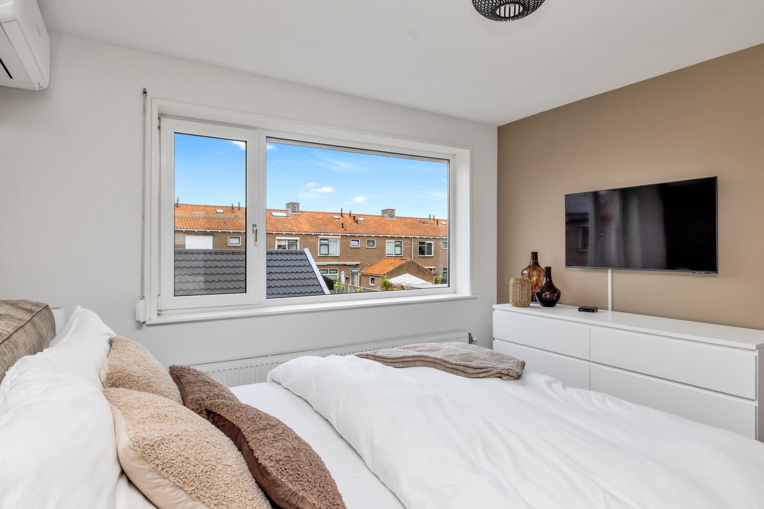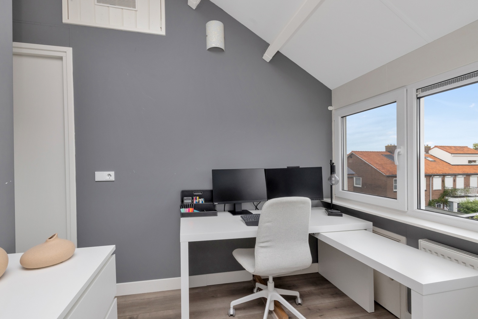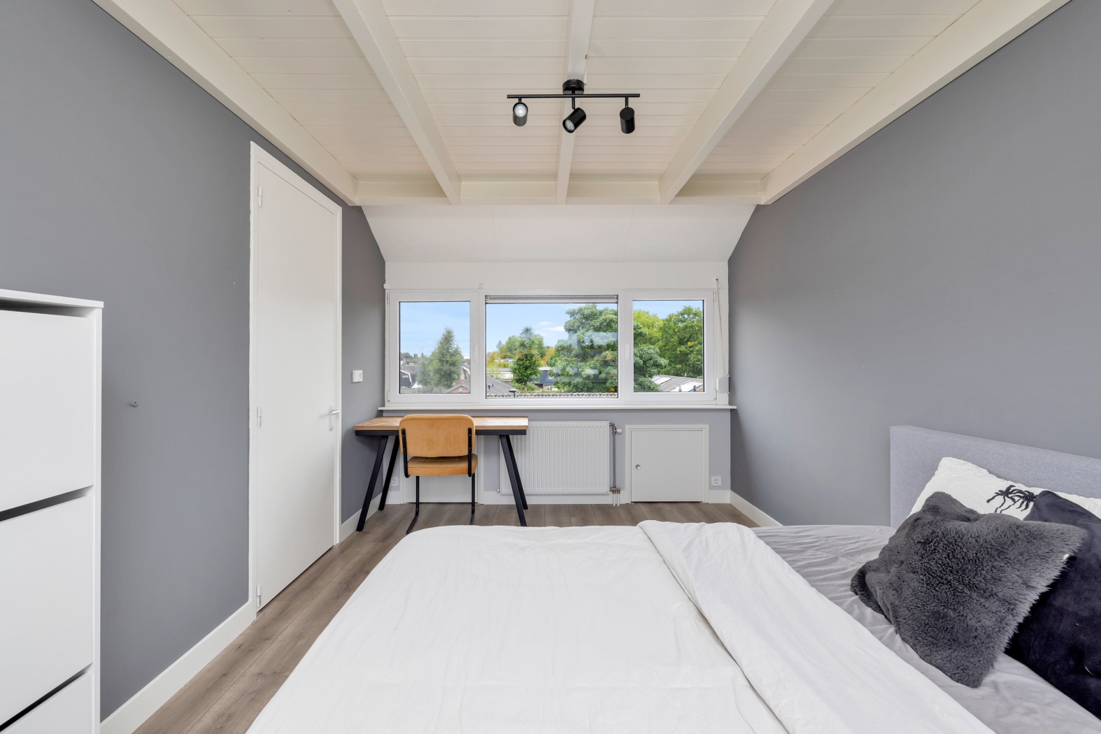 Aansluitend vind je een volwaardige derde slaapkamer. Door de dakopbouw is dit een lichte en comfortabele kamer met rechte wanden, waardoor de ruimte optimaal is in te richten. Of je deze kamer gebruikt als hoofdslaapkamer, kinderkamer of logeerkamer, hier ervaar je rust, ruimte en een prettig uitzicht.