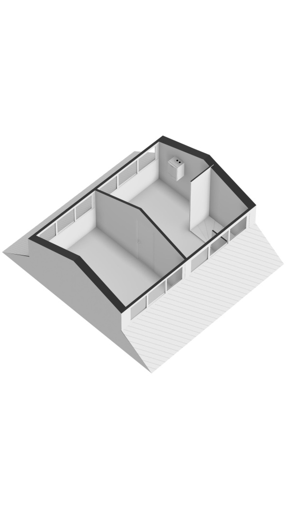 De tweede verdieping is dankzij de dakopbouw aanzienlijk vergroot en biedt daardoor verrassend veel extra leefruimte. Bovenaan de trap kom je op een ruime en lichte voorzolder met de opstelplaats van de cv-ketel. Door het royale formaat is deze ruimte uitermate geschikt als thuiswerkplek, hobbyruimte of praktische extra bergruimte.