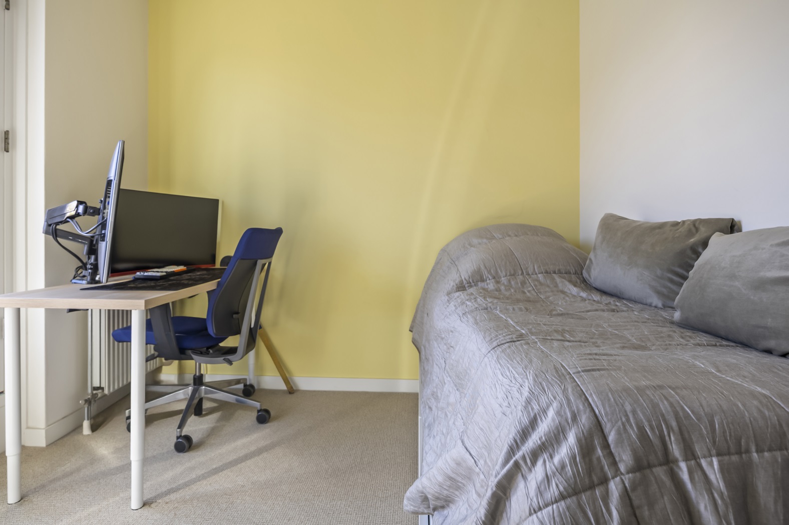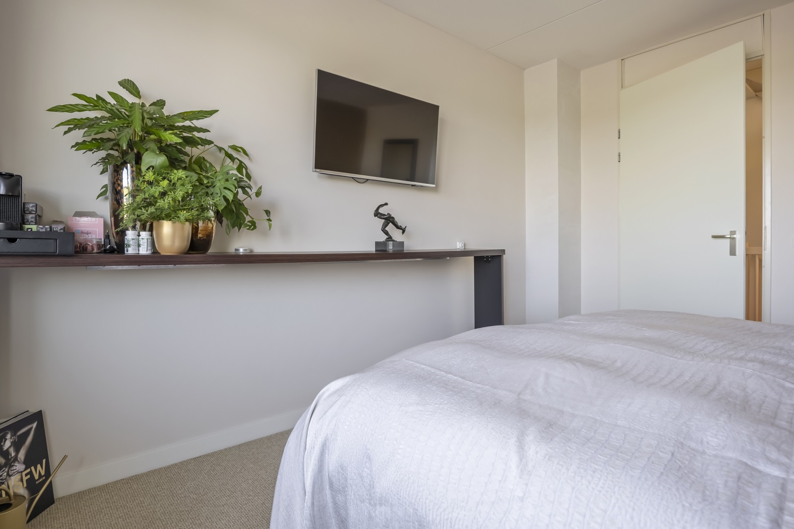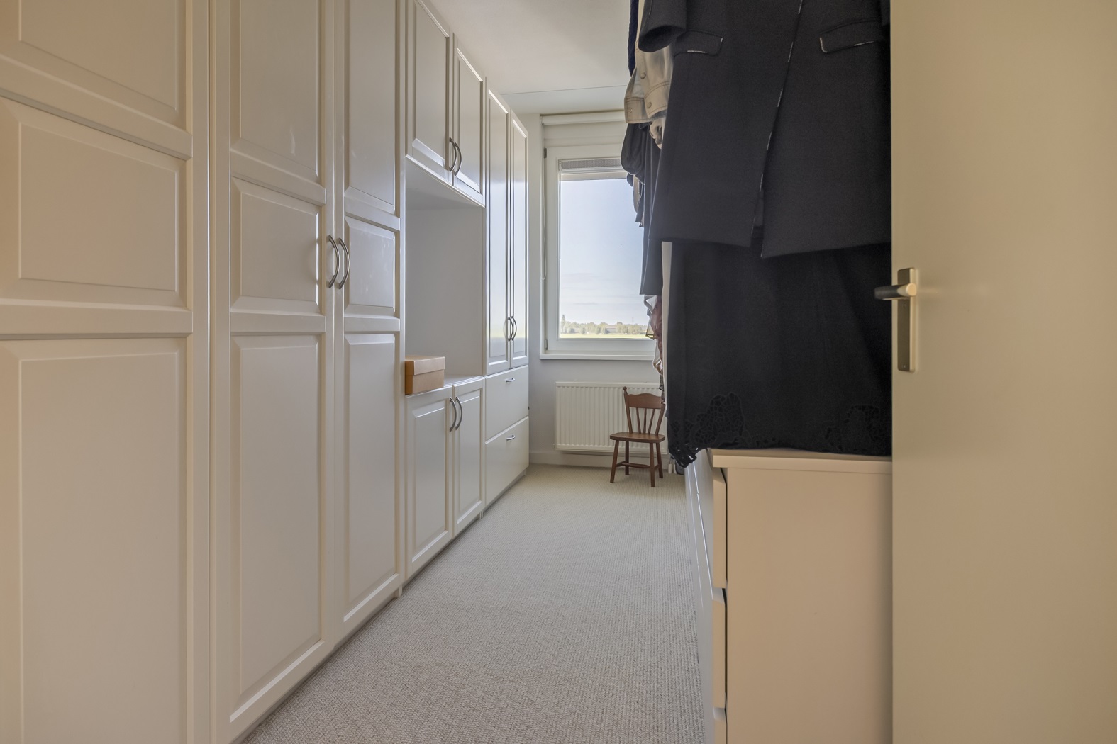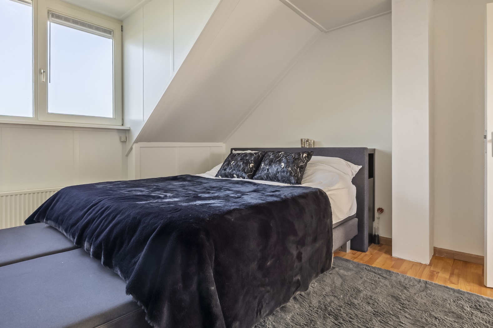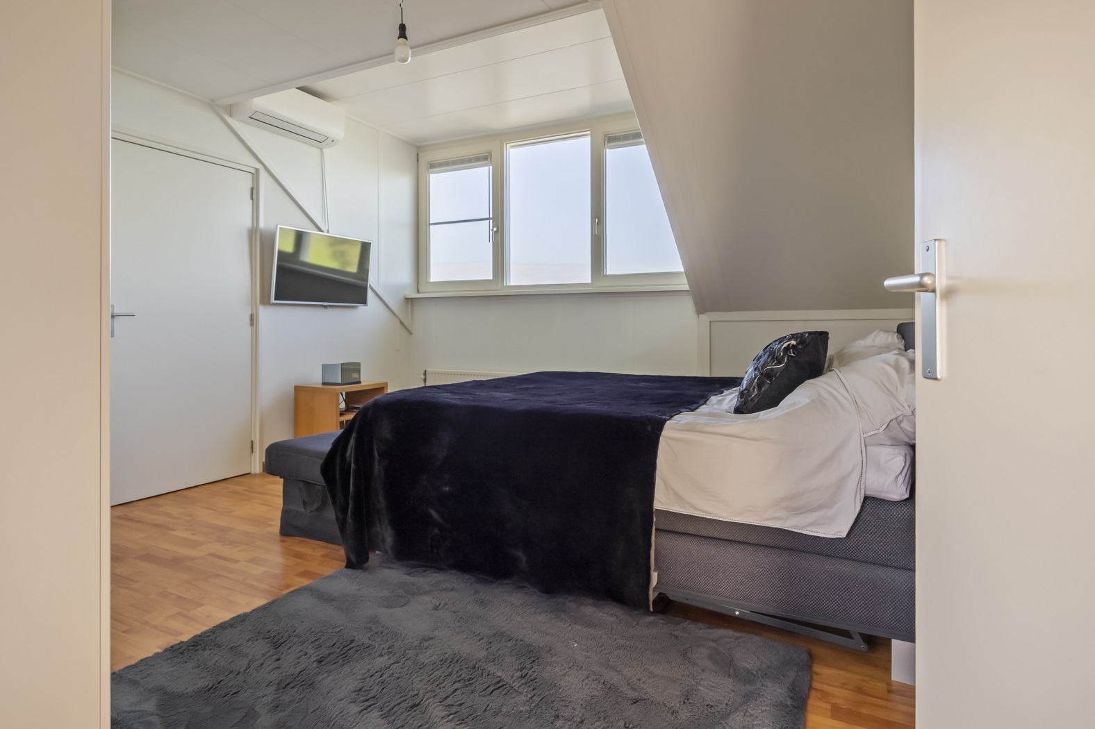 De vierde slaapkamer is een volwaardige kamer met dakkapel, airco, een praktische bergkast en extra bergruimte achter de knieschotten. En natuurlijk – hoe kan het ook anders – weer dat fijne uitzicht over de polder. Deze ruimte leent zich ook uitstekend als inspirerende werkkamer of hobbyruimte.
