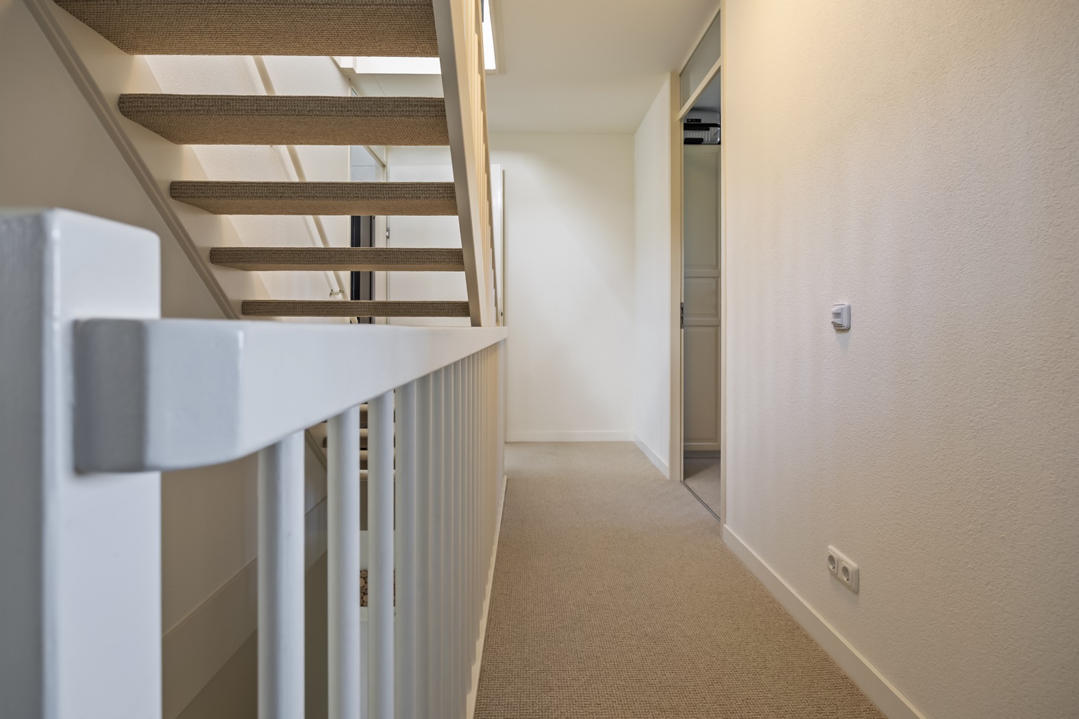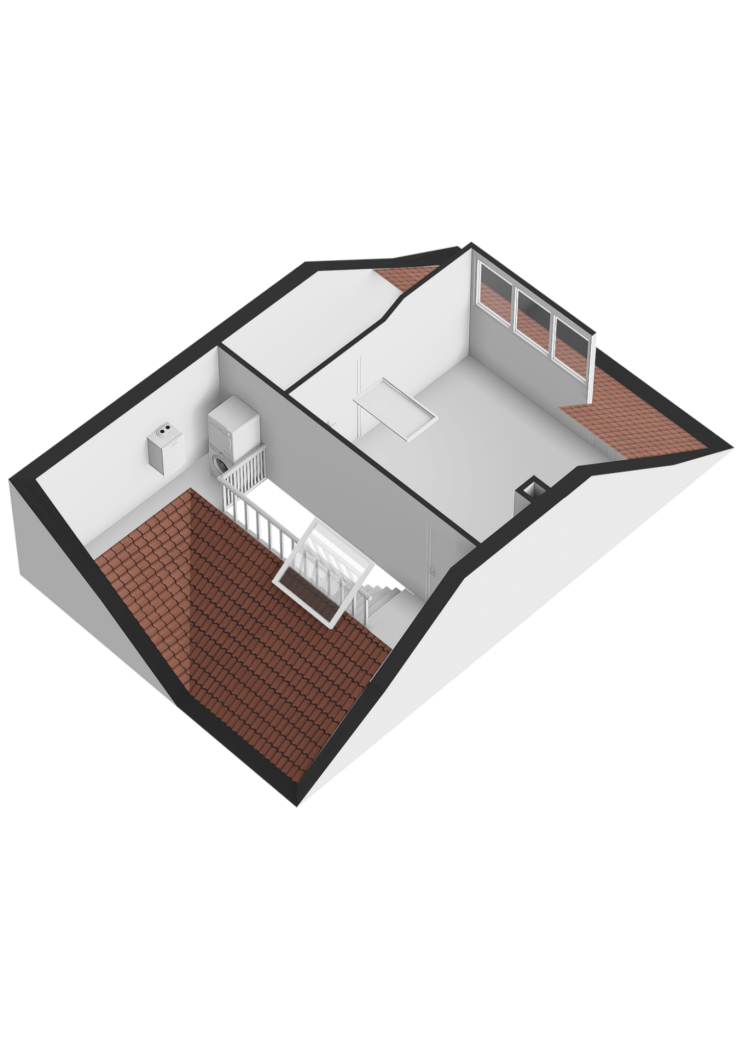 De voorzolder is praktisch ingedeeld met een dakraam, aansluitingen voor wasmachine en droger en de opstelplaats van de cv-ketel.