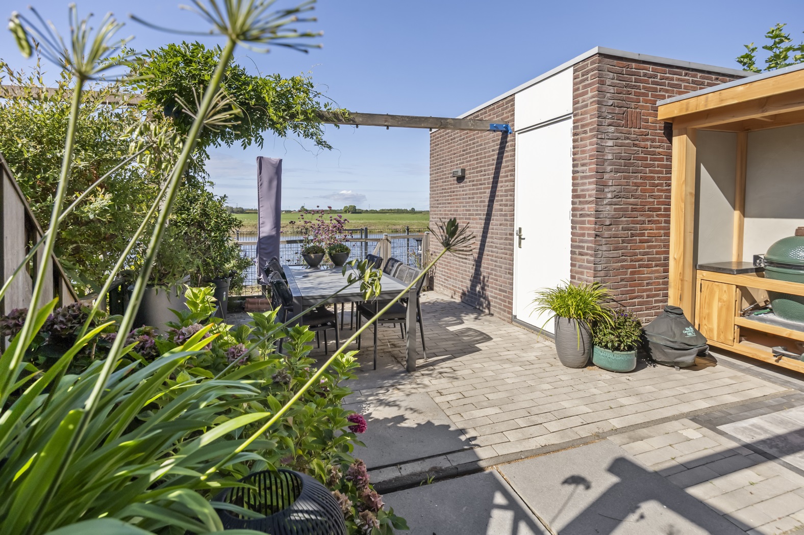Welkom in je eigen vakantieresort! De tuin is volledig bestraat, dus overal plek om lekker te zitten. Zet een eettafel naast de schuur en geniet van dat waanzinnige uitzicht over water en weilanden.