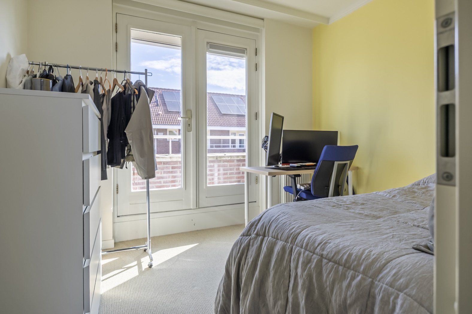 • Aan de voorzijde ligt een fijne kamer met dubbele deuren naar het balkon.