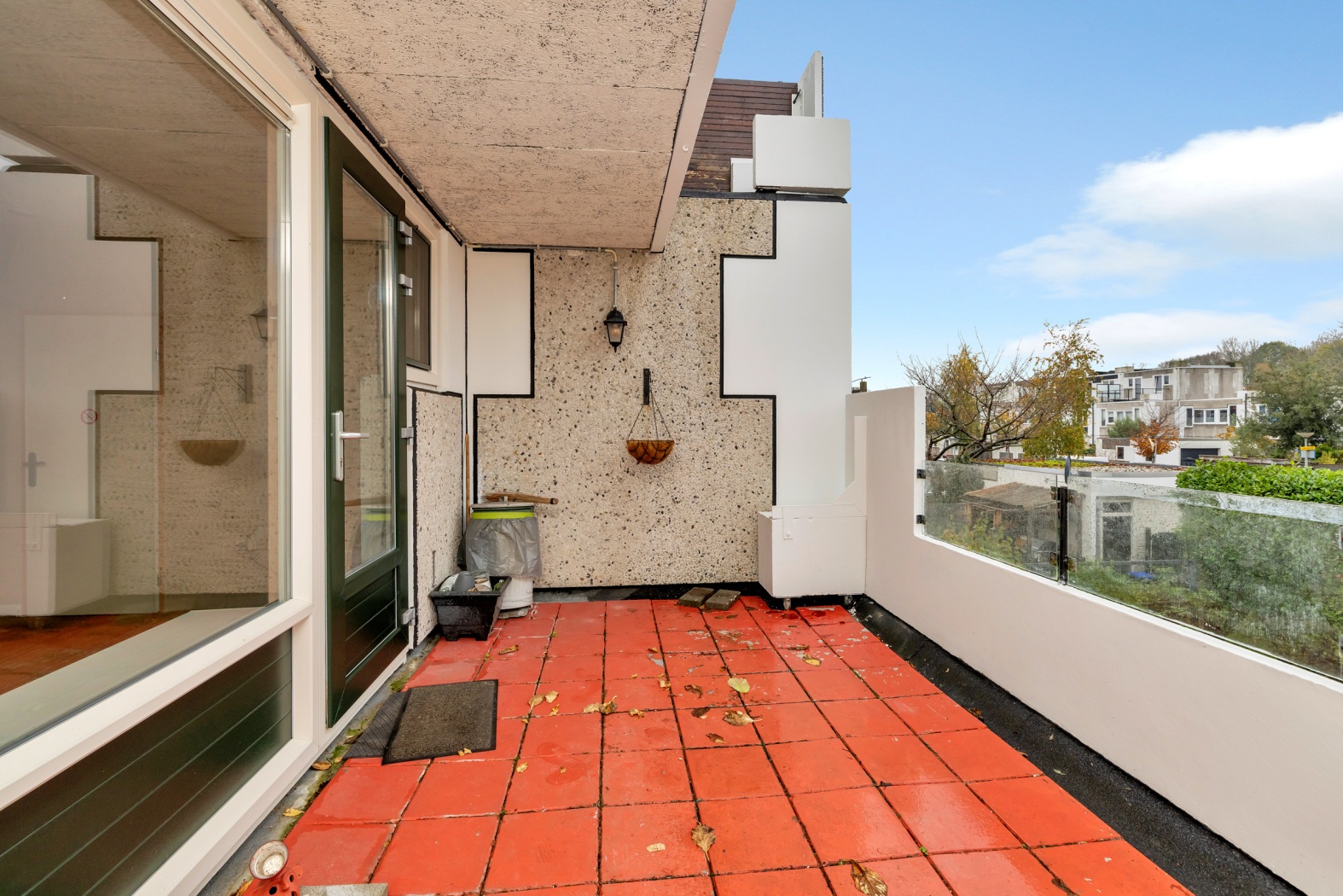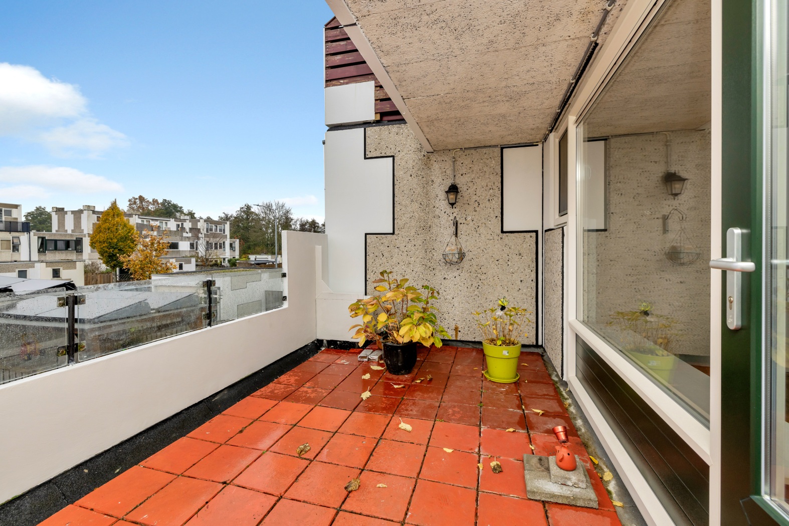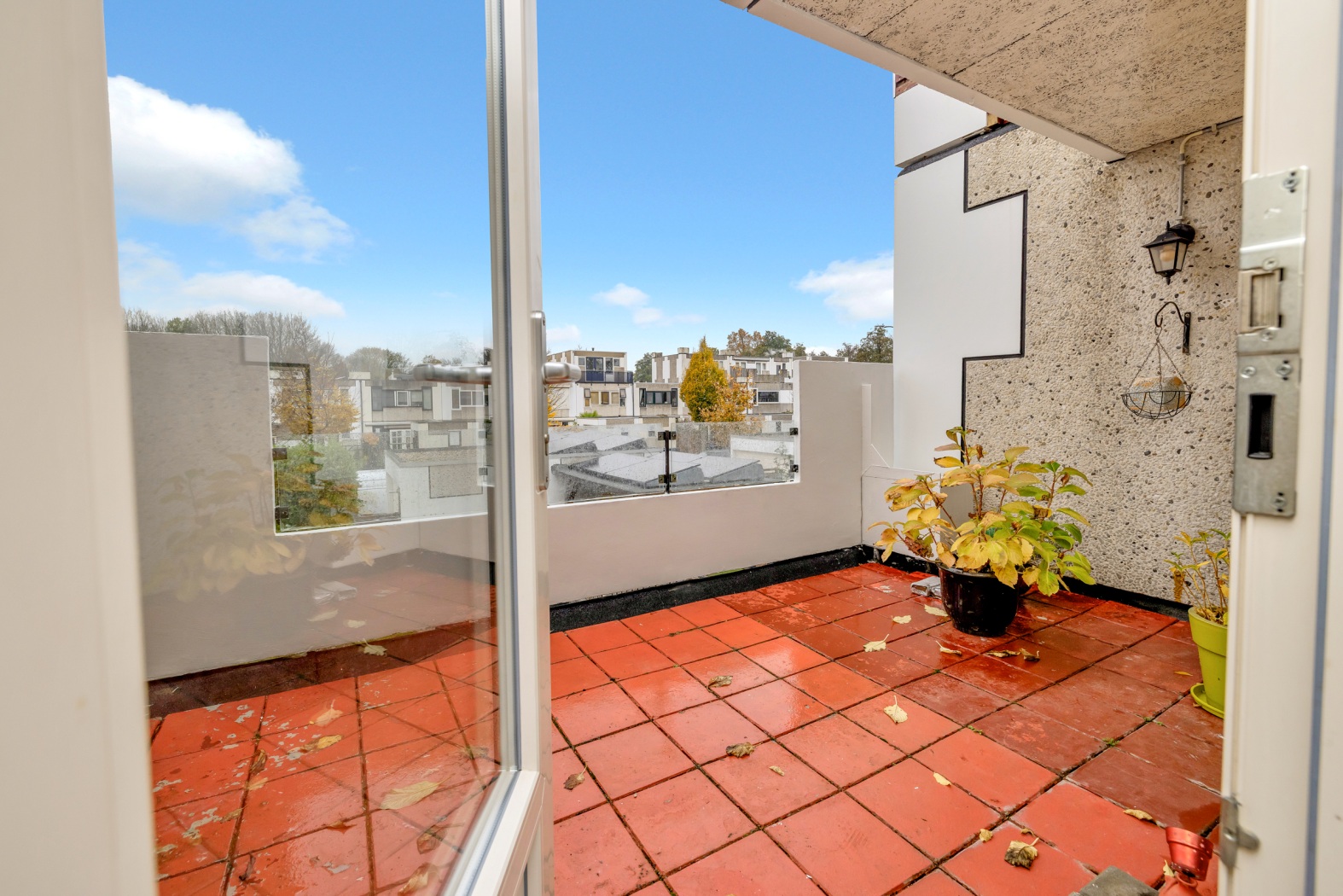 En dan is er nog de deur naar buiten… Deze leidt je rechtstreeks naar het heerlijke dakterras van maar liefst 13 m²: jouw eigen plek om te ontspannen, te borrelen of simpelweg te genieten van de rust om je heen. Een buitenruimte om trots op te zijn. Dankzij de ideale ligging geniet je ’s ochtends van de eerste zonnestralen tijdens het ontbijt in de keuken, en vanaf het middaguur schijnt de zon volop op het balkon. Zo heb je de hele dag door een fijne, zonnige plek om te genieten.