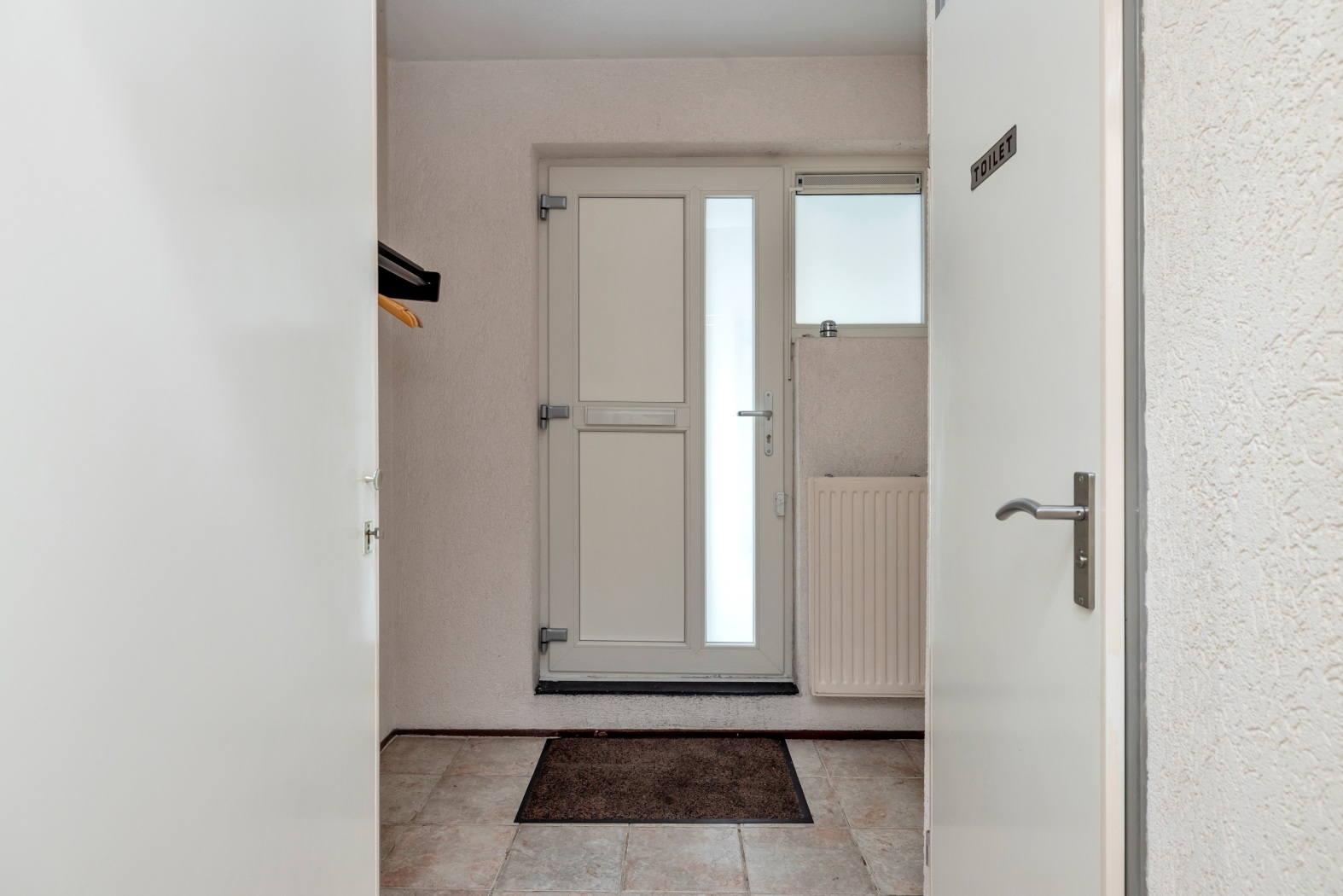 Via de galerij bereik je de voordeur, waar zich meteen jouw tweede berging bevindt — ideaal voor extra opslag binnen handbereik. Zodra je binnenstapt in de ruime hal heb je direct toegang tot de meterkast, de garderobe, de stookruimte met c.v.-opstelling en het toilet. Alles overzichtelijk en praktisch geordend, precies zoals je het bij binnenkomst graag ziet.