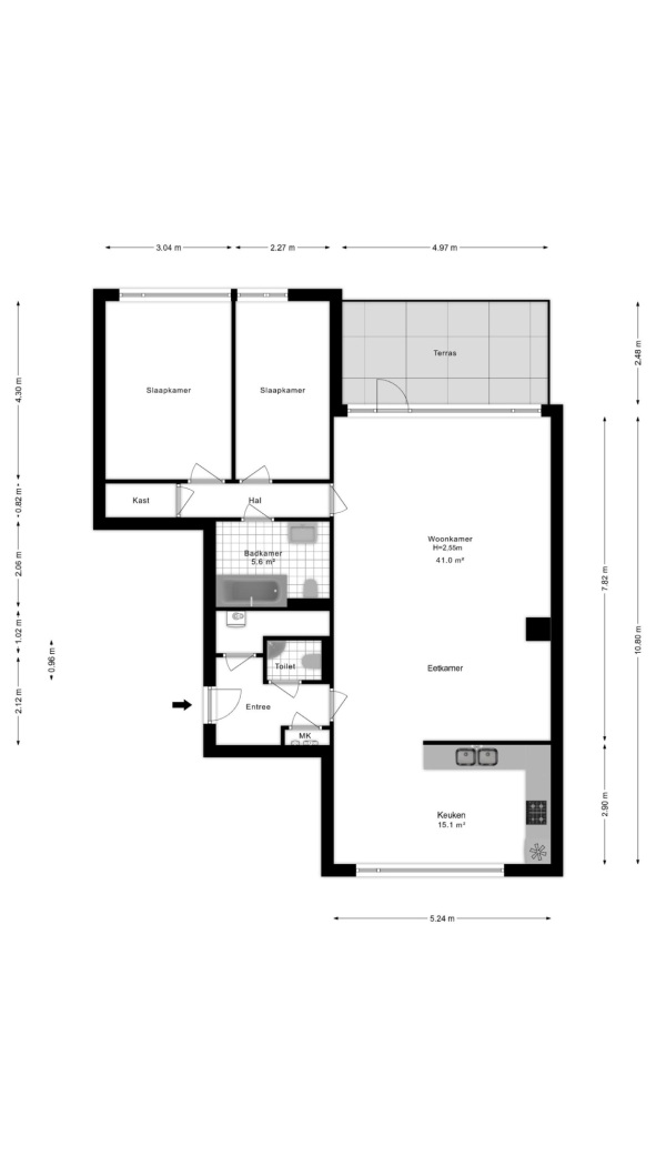 Wat een zee aan ruimte: maar liefst 56 m²! Met een lengte van 10,80 meter en een breedte van 5,24 meter kun je hier echt alle kanten op. Met een beetje handigheid tover je deze oppervlakte om tot een prachtige leefruimte. Denk aan wat stucwerk, een nieuwe vloer en een frisse kleur op de muren — en voilà, een totaal nieuwe sfeer.