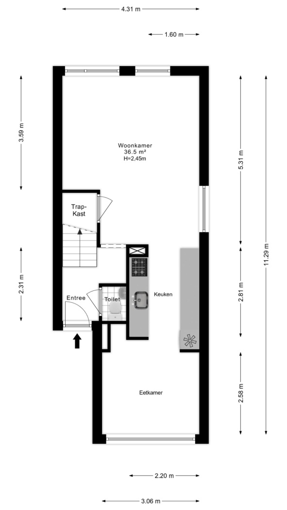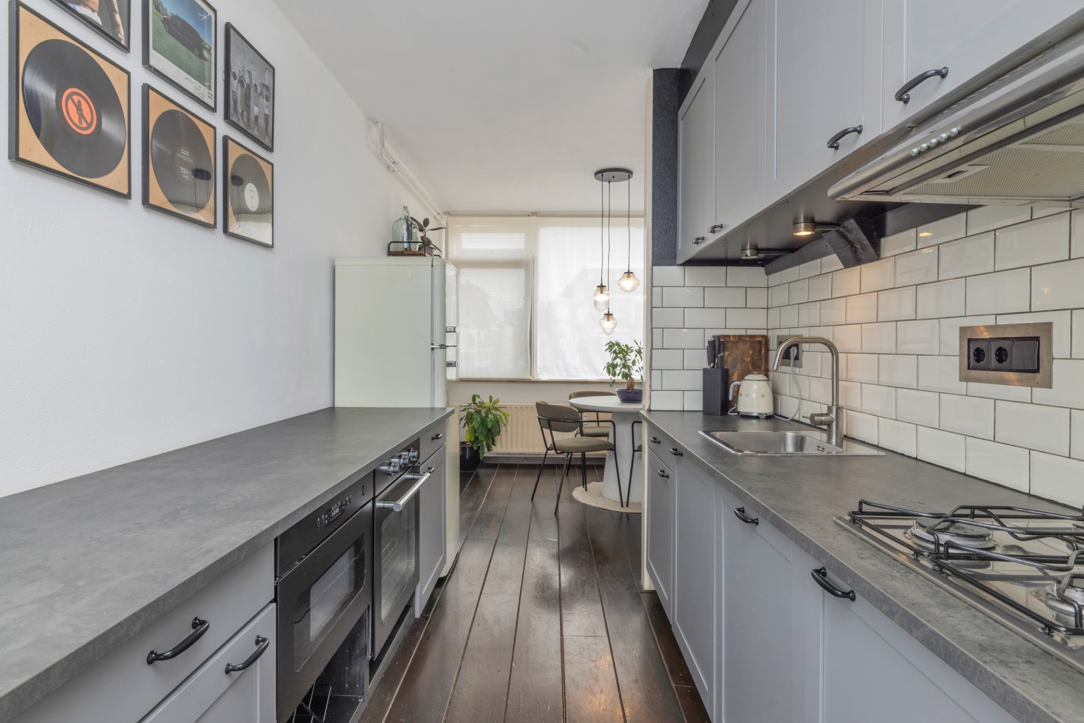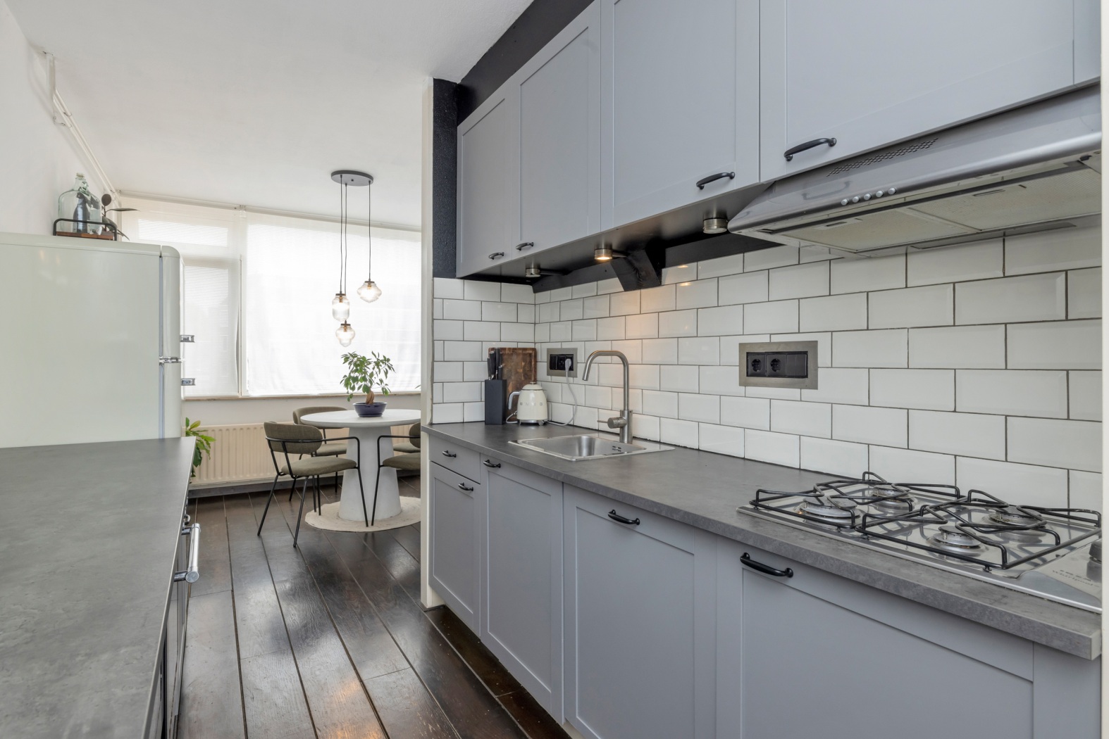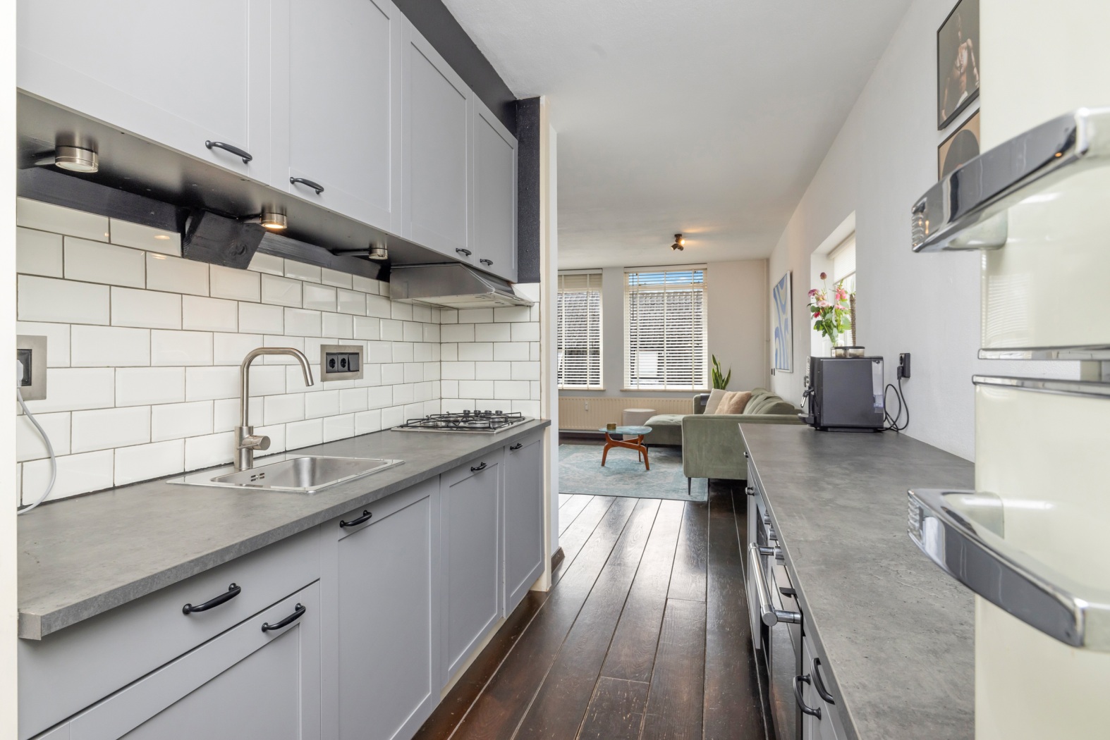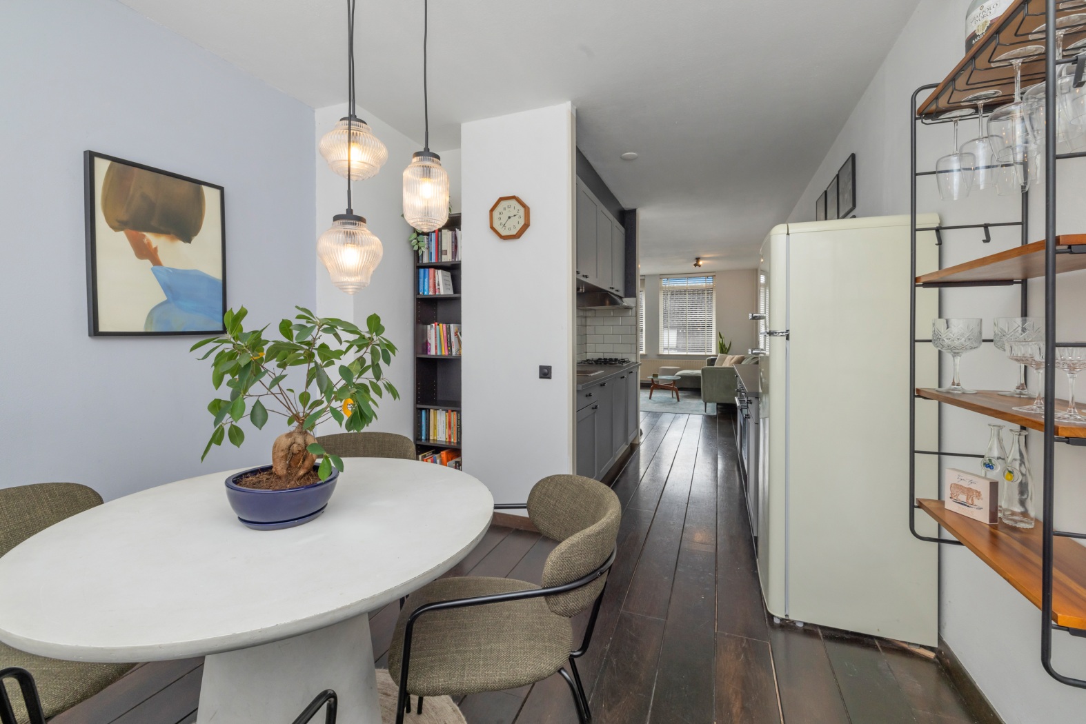 Via de entree kom je binnen in de gezellige woonkamer, een lichte en ruime ruimte waar het zonlicht royaal naar binnen valt. De open keuken grenst hier direct aan en is zowel praktisch als gezellig, ideaal om te koken terwijl je in contact blijft met je gasten. Aan de voorzijde bevindt zich het eetgedeelte, waar je kunt genieten van een leuk uitzicht over de straat.