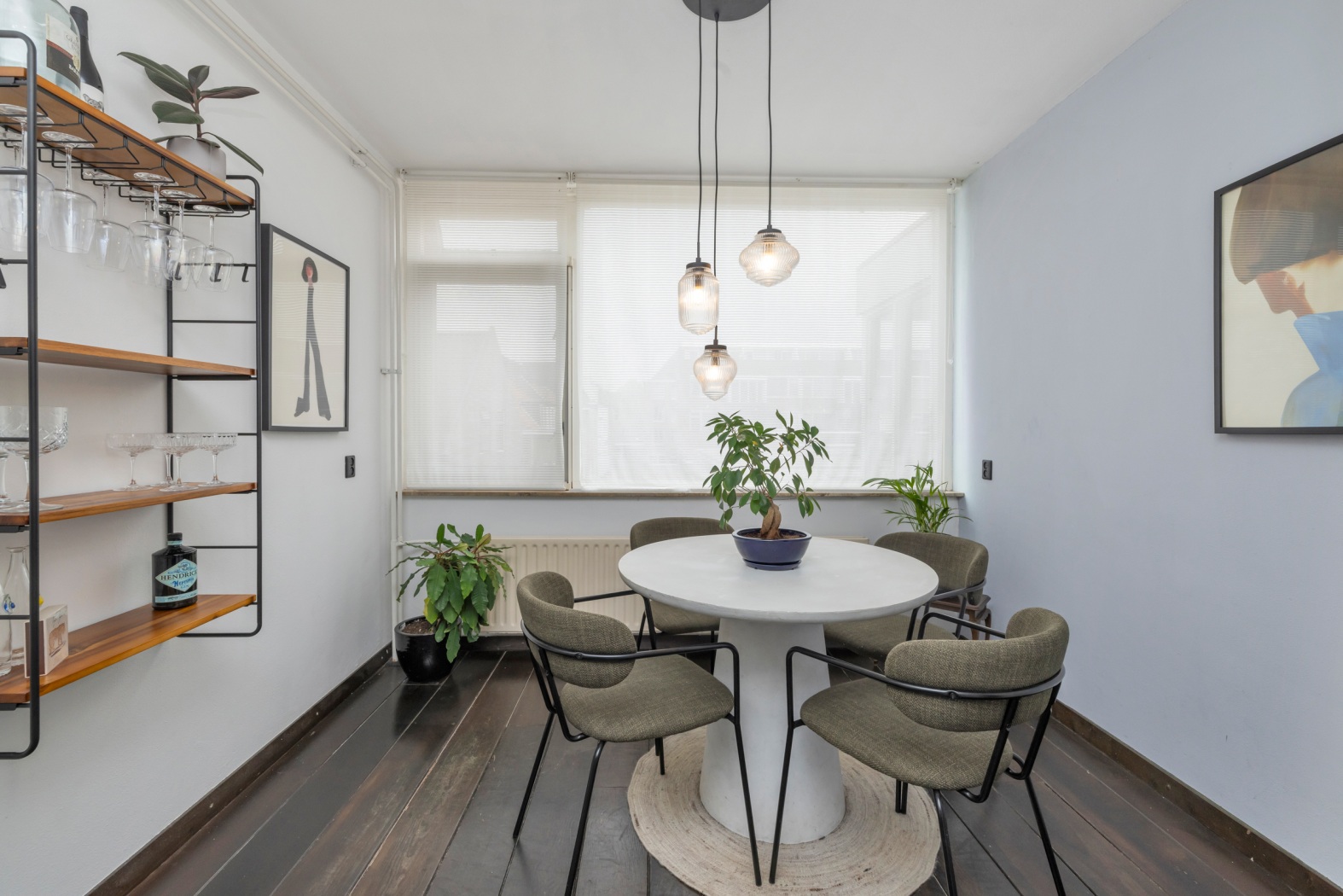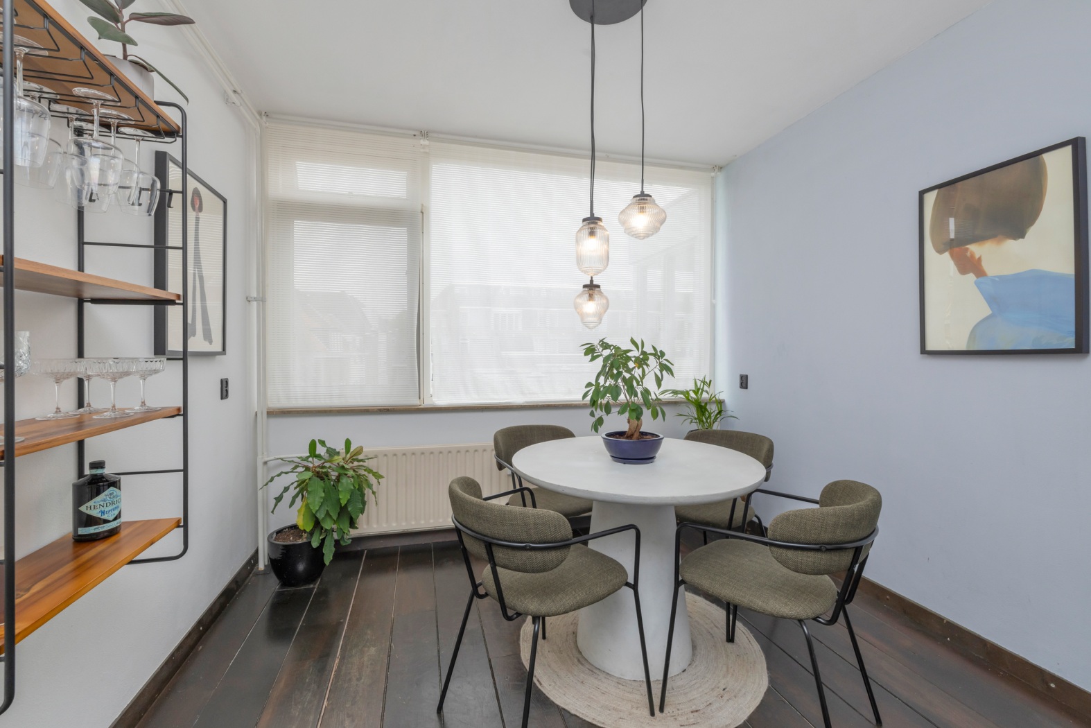 Eetgedeelte aan de voorzijde met leuk straatzicht