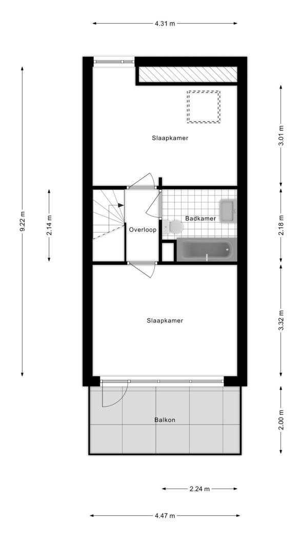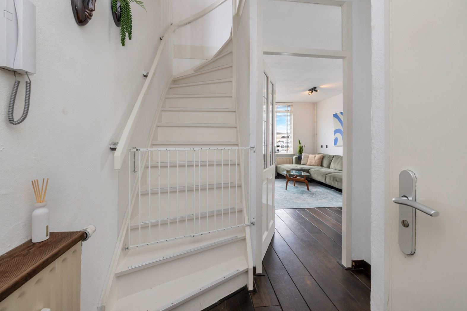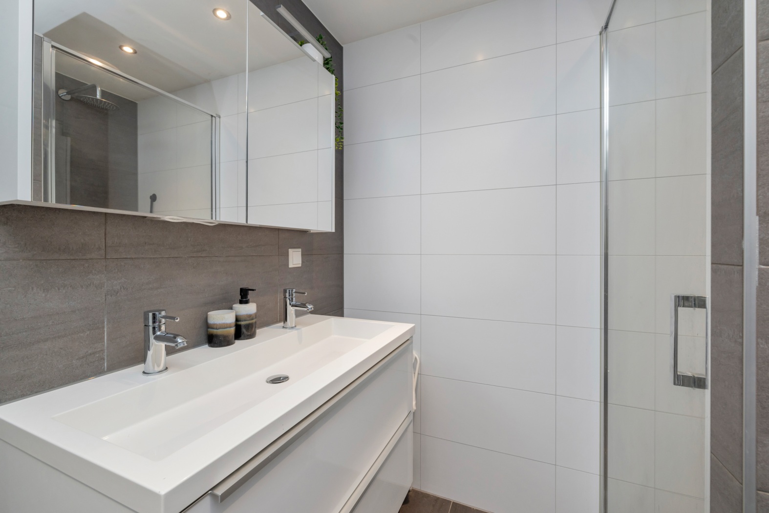 Op de eerste verdieping vind je twee ruime slaapkamers, perfect voor een gezin, een thuiskantoor of logees. De badkamer is in 2018 volledig gerenoveerd en modern ingericht, met een inloopdouche, dubbele wastafel, tweede toilet en aansluitingen voor wasmachine en droger. Vanuit de achterste slaapkamer stap je zo het balkon op het oosten op, waar je ’s ochtends heerlijk van de zon kunt genieten met een kop koffie.