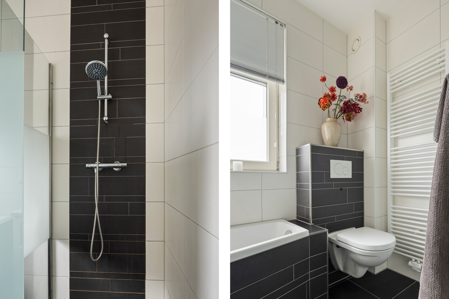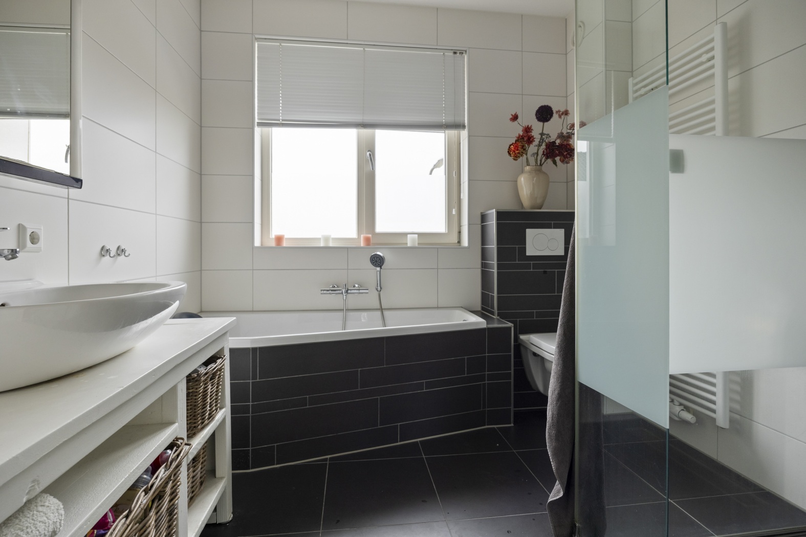 Op de eerste verdieping vindt je drie goed bemeten slaapkamers en een extra kantoortje, wat zorgt voor nog meer wooncomfort. De kamers zijn allemaal voorzien van grote raampartijen wat zorgt voor een fijne lichtinval en een open gevoel. De hoofdslaapkamer is voorzien van airco wat in de zomer voor verkoeling zorgt. De badkamer is van prima formaat en goed onderhouden. Hier vindt je een ligbad, een douche, een toilet en een wastafelmeubel. Daarnaast is de ruimte voorzien van een raam wat niet alleen voor daglicht maar ook voor natuurlijke ventilatie zorgt.