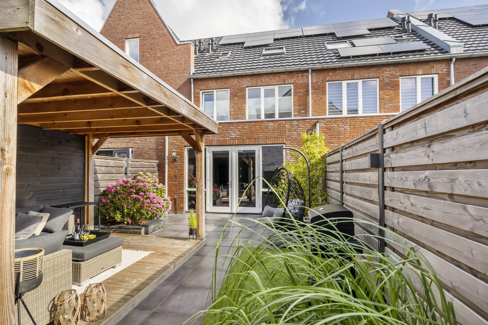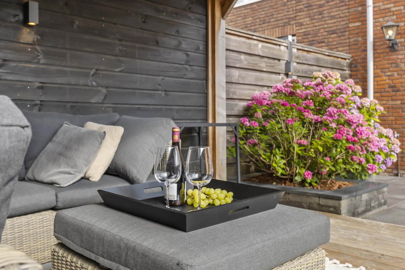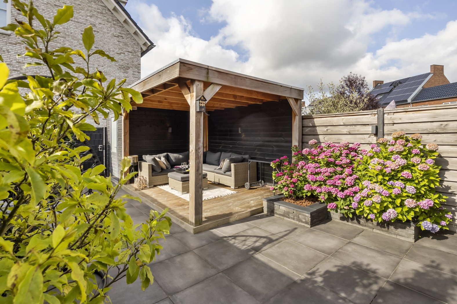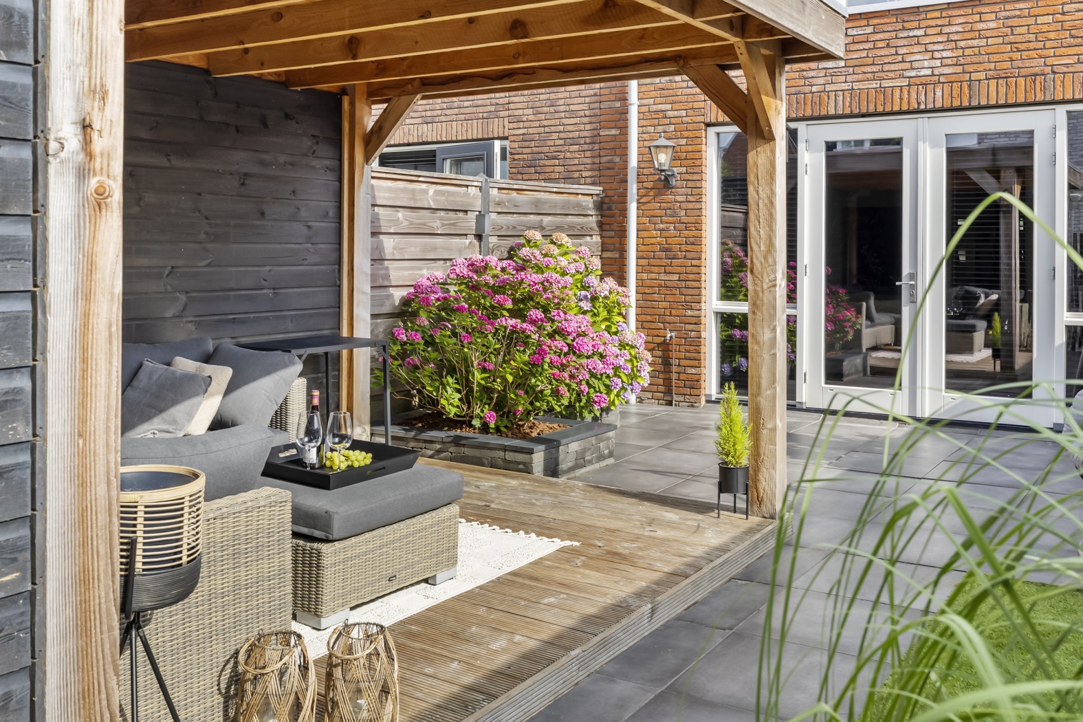 Met een perceel van 159 m² en een ideale ligging op het zuiden is de achtertuin een heerlijke plek om elke dag te ontspannen. De tuin is strak en sfeervol aangelegd met moderne terrastegels, verhoogde plantenbakken en een prachtige loungeoverkapping van 4 x 3 meter, direct grenzend aan de schuur. Een perfecte setting voor een zomerse barbecue, een goed glas wijn in de avondzon of een gezellige avond met vrienden.