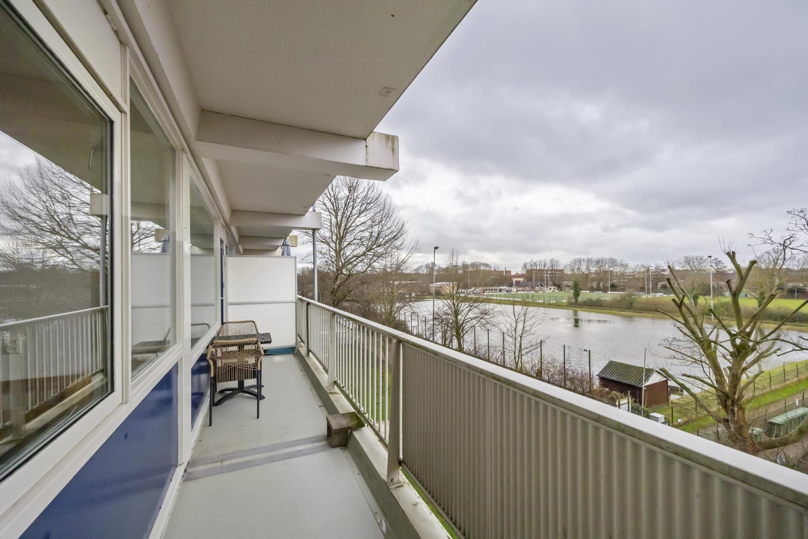 Het ruime balkon terras (ca. 8,15 x 1,20 m) is zowel vanuit de woonkamer als de slaapkamer toegankelijk en biedt een heerlijke buitenruimte om van te genieten. Begin je dag met een kop koffie in de ochtend rust of sluit de avond af met een goed glas wijn in de warme avondzon. Dankzij de gunstige westelijke ligging profiteer je van veel zon en privacy, terwijl het vrije uitzicht over de naastgelegen sportvelden, ijsbaan en volkstuinen een extra gevoel van ruimte en ontspanning geeft.