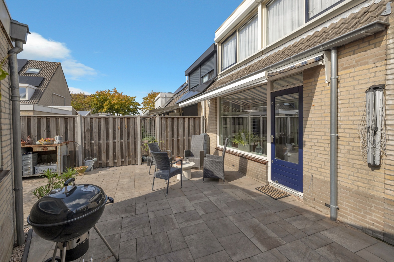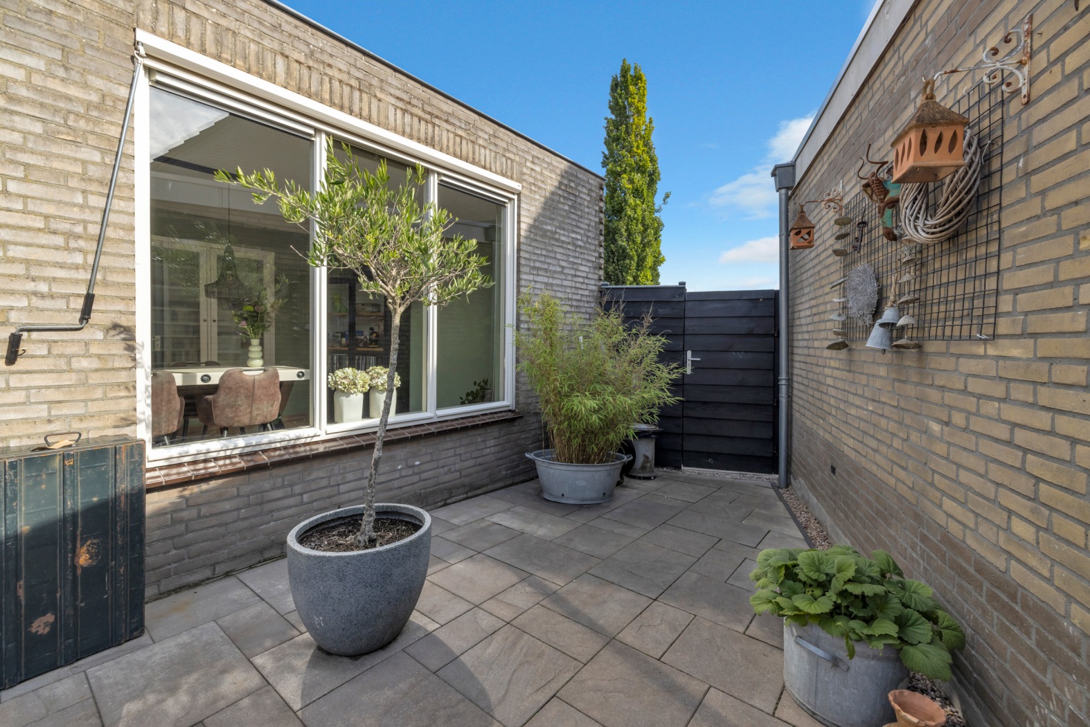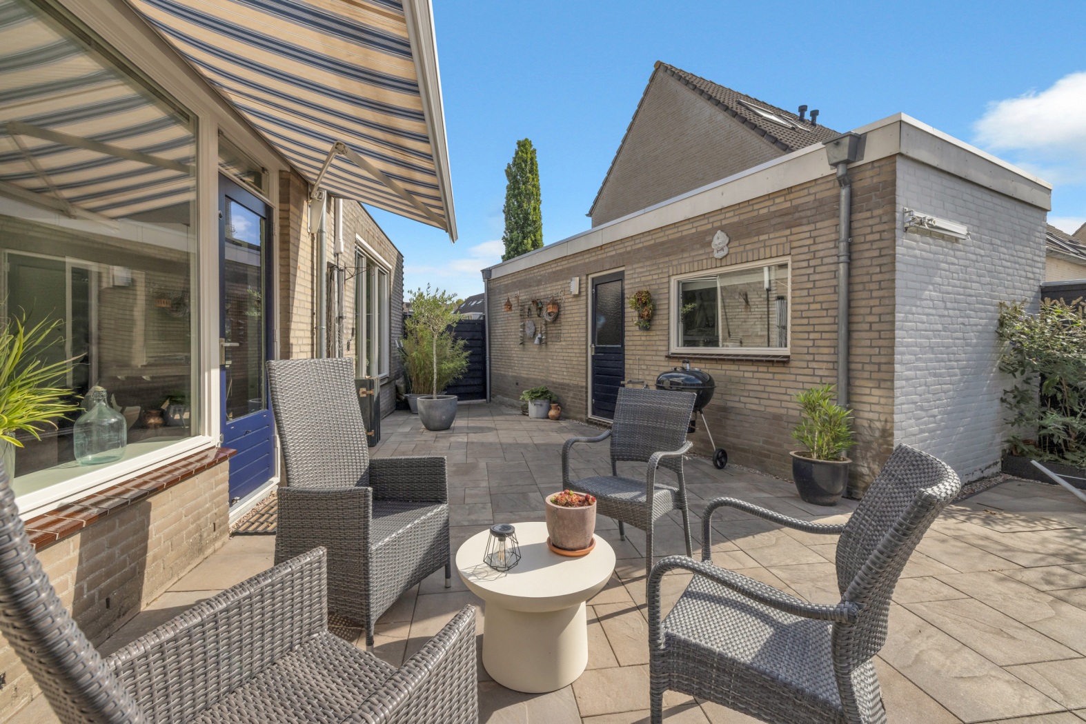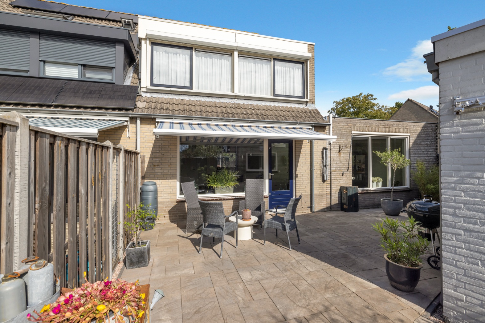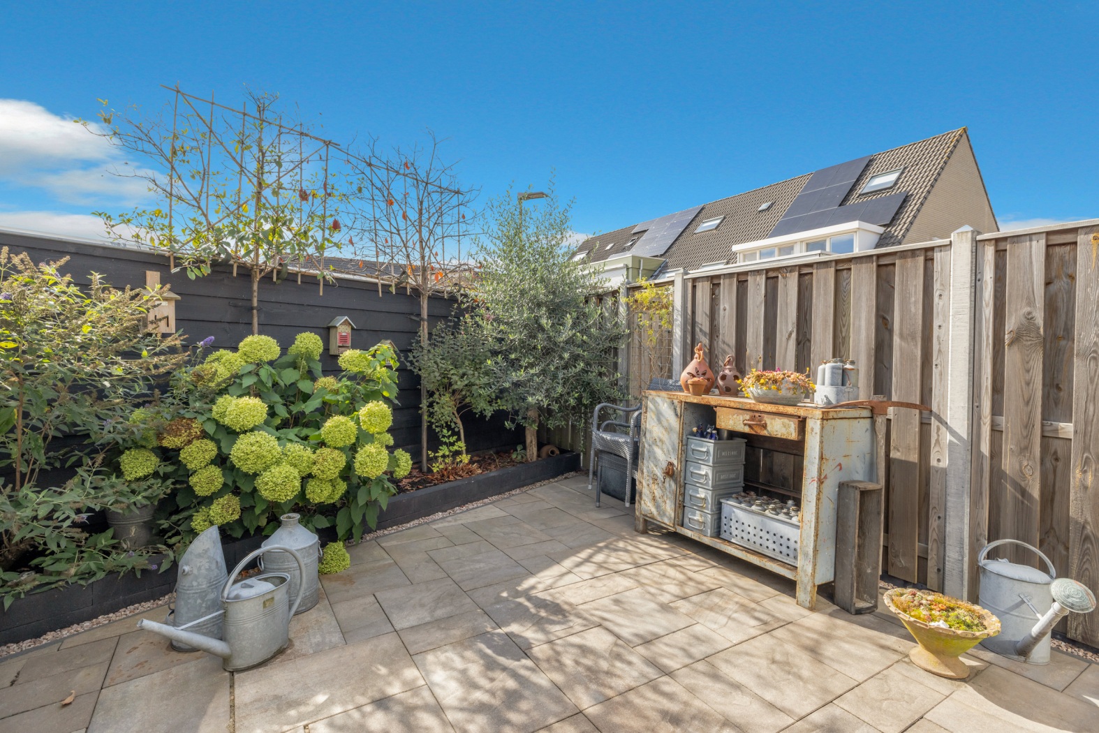 De onderhoudsvriendelijke achtertuin ligt heerlijk op het zuiden, waardoor je hier de hele dag van de zon kunt genieten. De tuin is grotendeels bestraat en voorzien van een zonnescherm aan de achtergevel – ideaal op warme zomerdagen. Achterin staat een royale vrijstaande stenen garage/berging van maar liefst 23 m², perfect voor fietsen, gereedschap of hobby’s. Ook de voortuin is netjes aangelegd met sierbestrating en een stijlvol gietijzeren hekwerk dat het geheel een verzorgde uitstraling geeft.