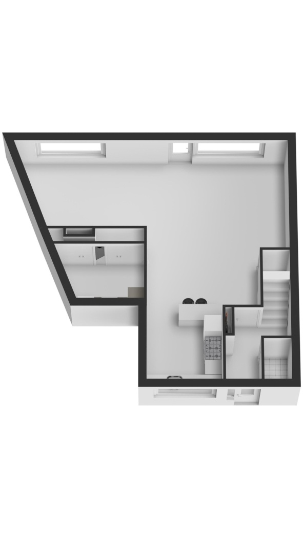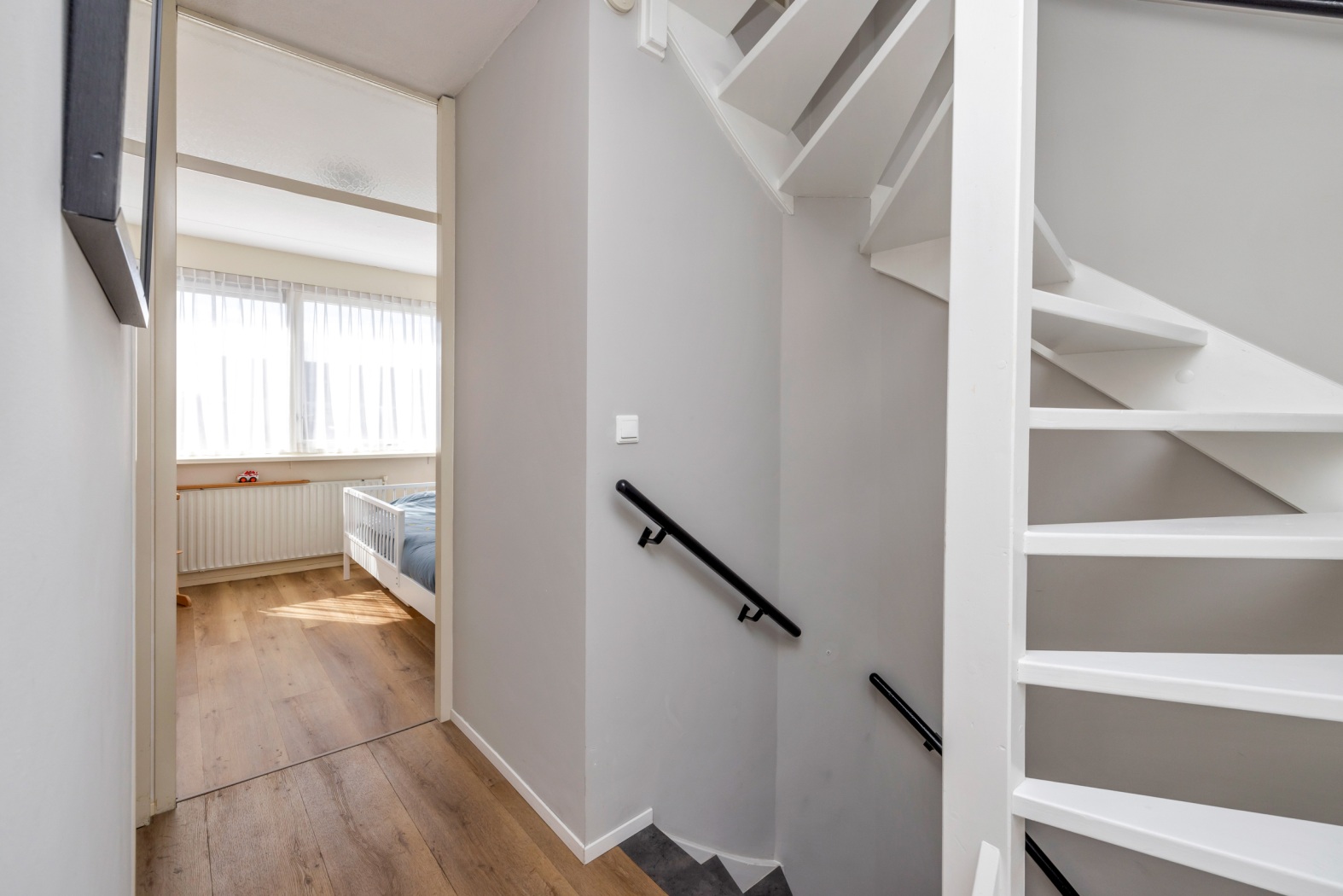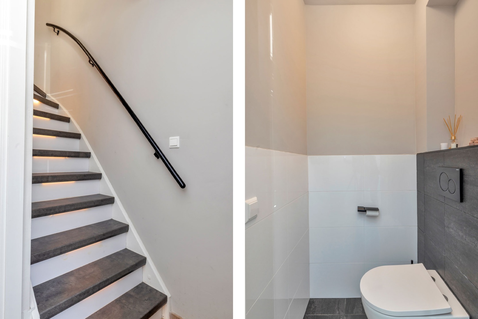 Via de entree stap je binnen in een lichte hal die meteen een uitnodigende indruk geeft. Vanuit hier heb je toegang tot de woonkamer, de moderne toiletruimte, de meterkast en de trapopgang. De trap is afgewerkt in een stoere betonlook en voorzien van sfeervolle verlichting – een echte eyecatcher die je letterlijk de weg naar boven leidt.