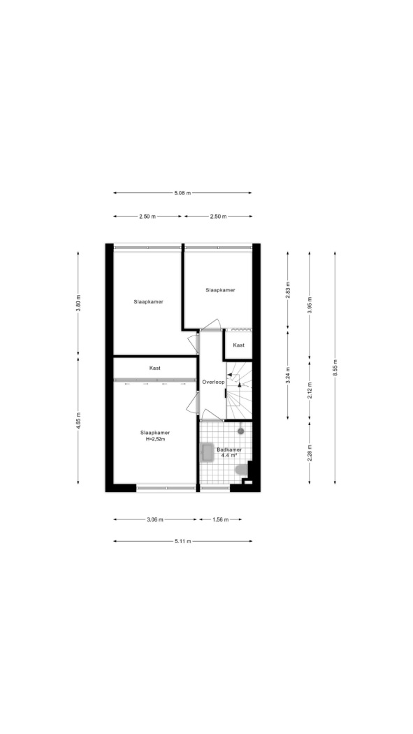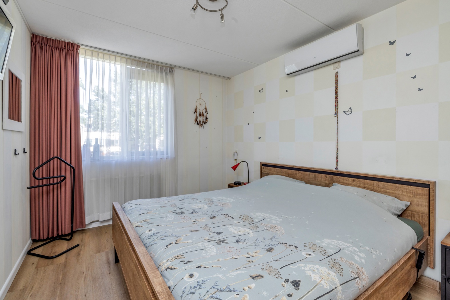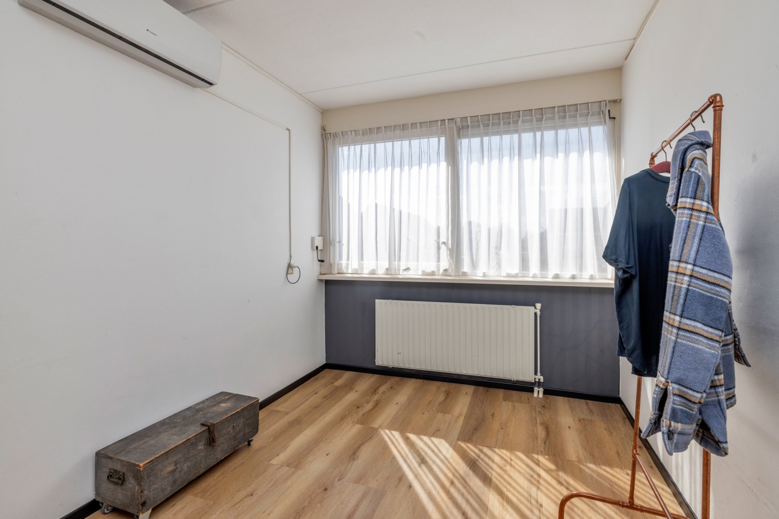 Op de eerste verdieping bevinden zich drie goed bemeten slaapkamers. Aan de voorzijde ligt een ruime kamer met airconditioning en een royale 4-deurs schuifwandkast. Aan de achterzijde zijn twee slaapkamers gesitueerd, beide voorzien van een dakopbouw met dakkapel én rolluiken – ideaal om de kamers koel en donker te houden. Eén van deze slaapkamers beschikt bovendien over airconditioning, terwijl de andere is uitgerust met een praktische vaste kast.